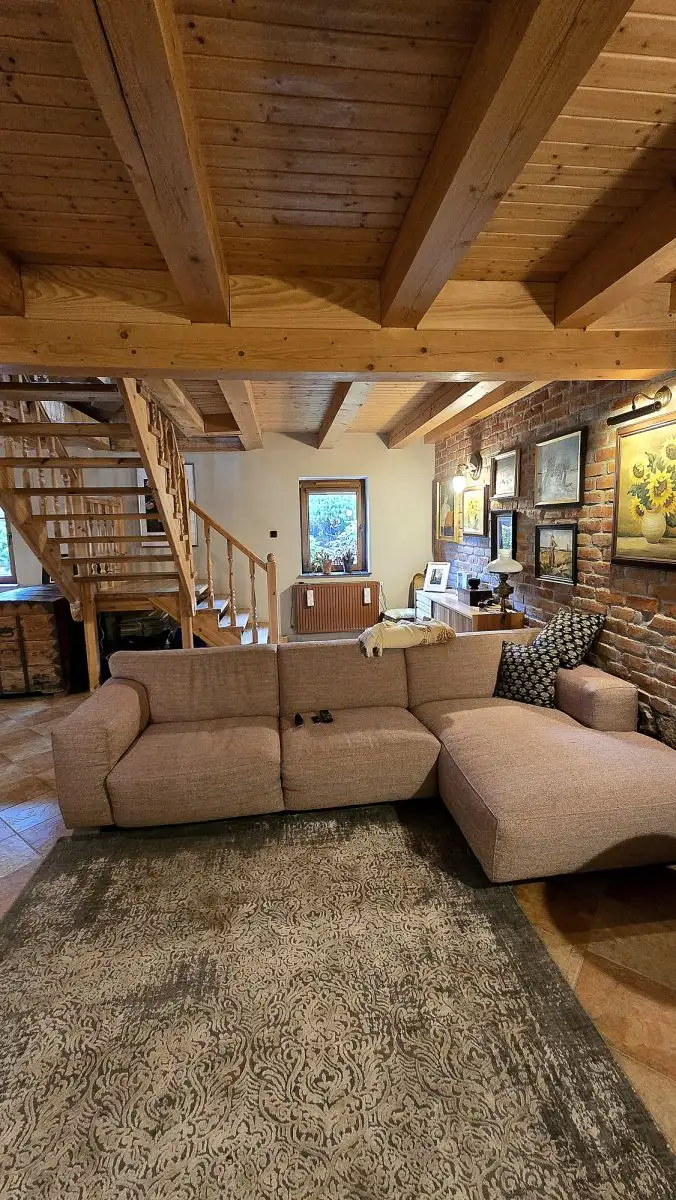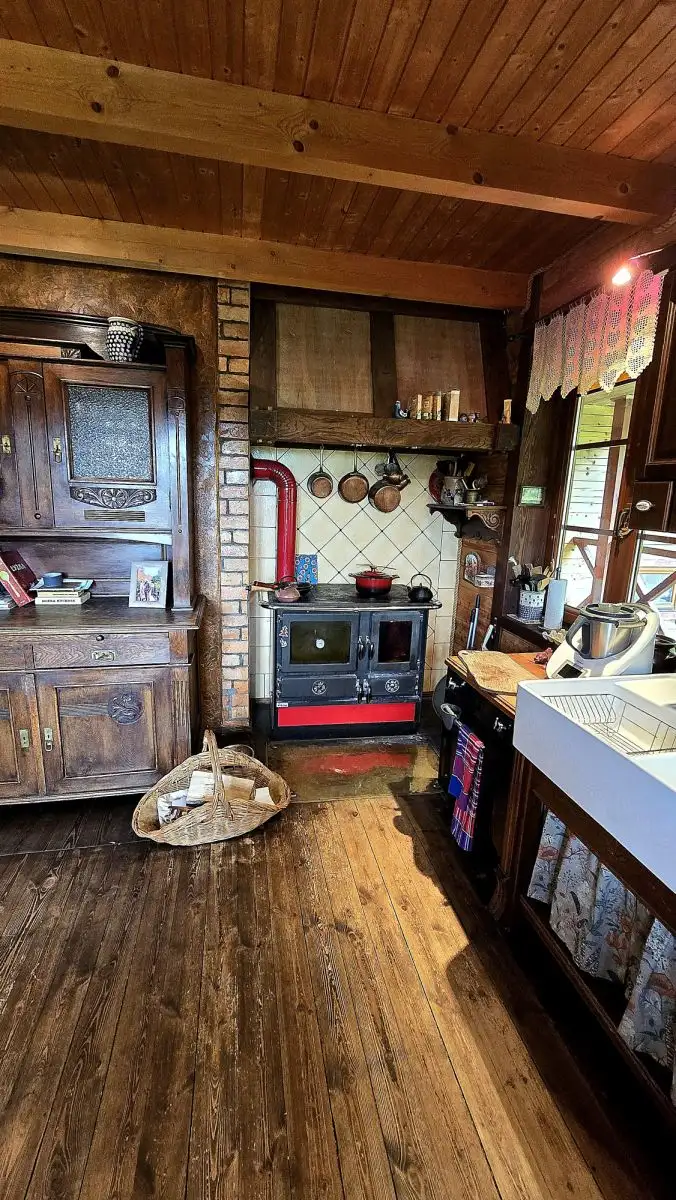 Ekologiczny, drewniany budynek z dwiema kondygnacjami i piwnicą. W pełni komfortowy przez cały rok.