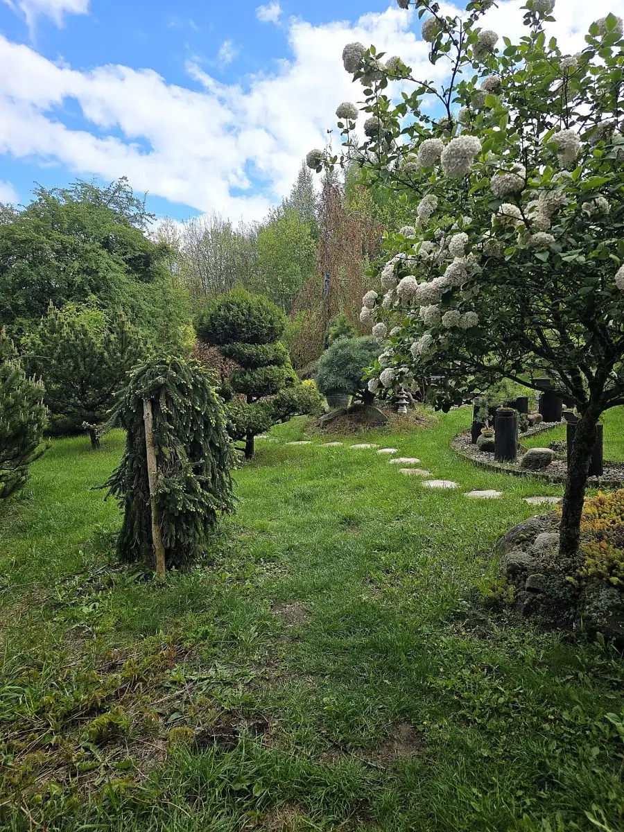 -Liczne nasadzenia drzew iglastych i ozdobnych