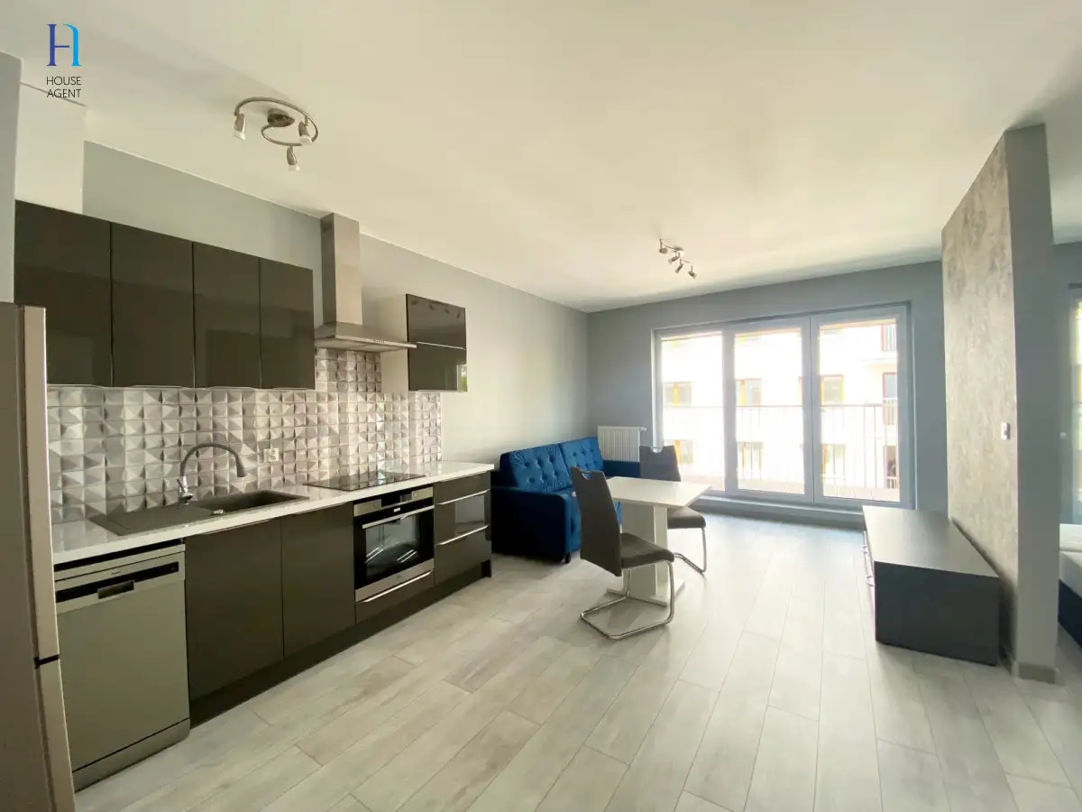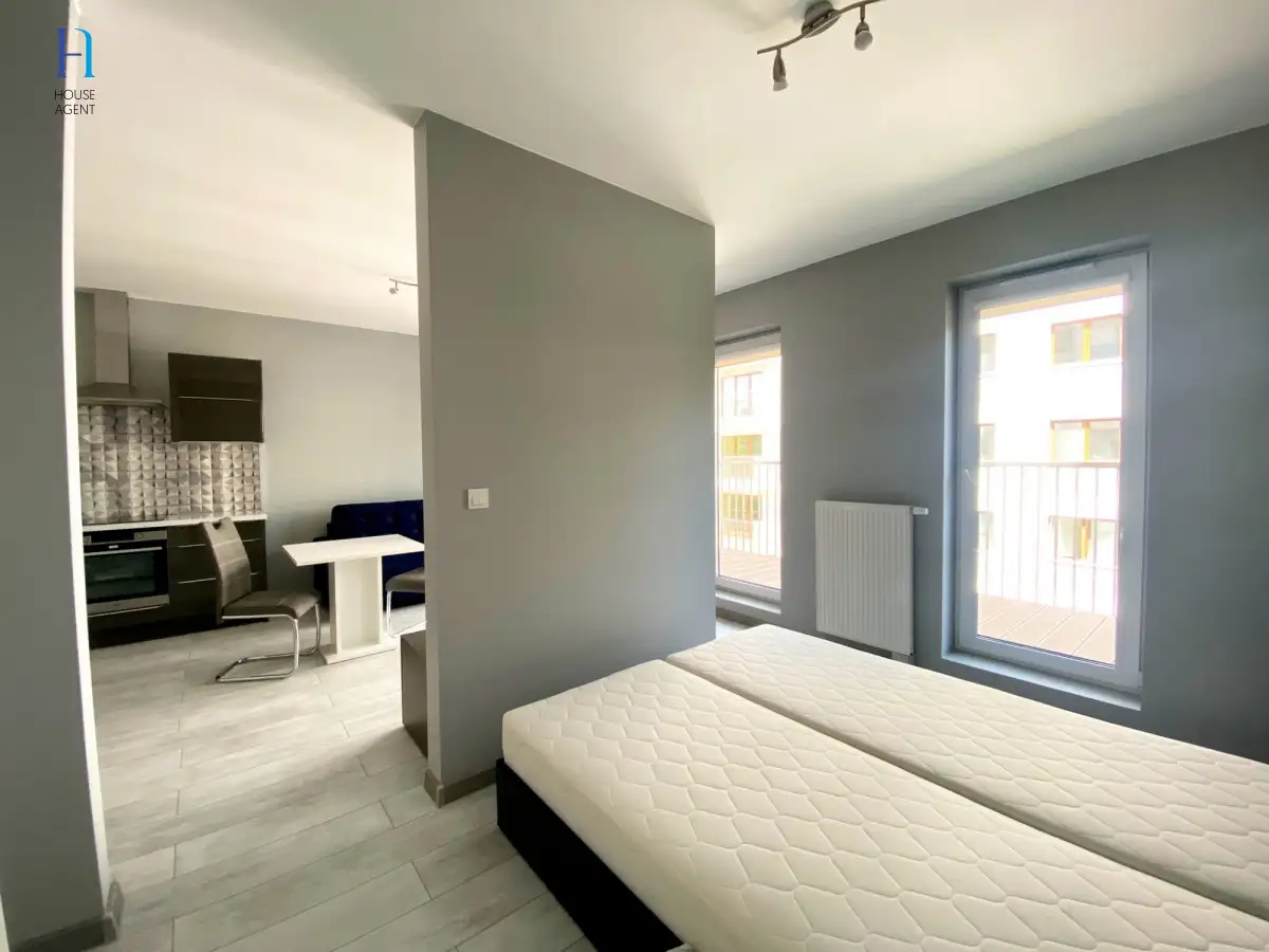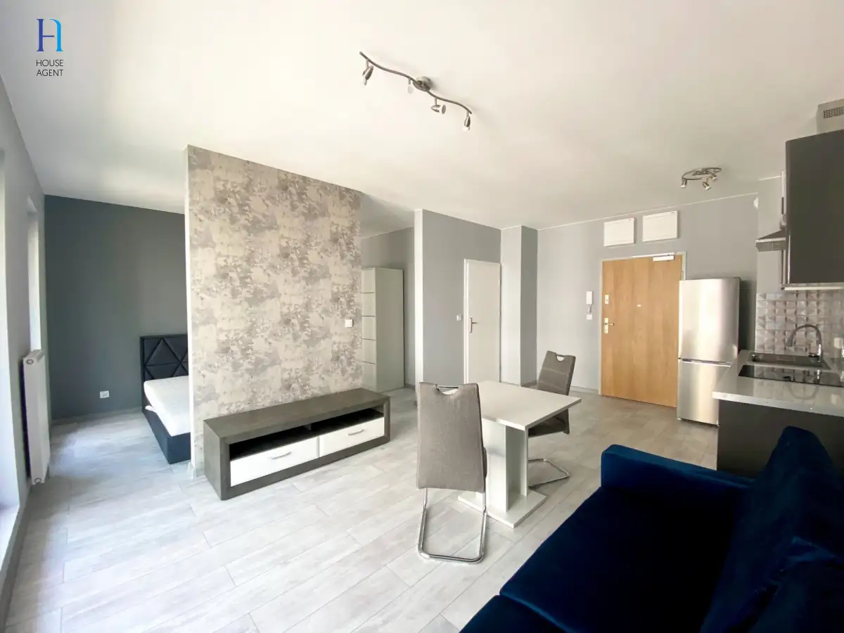 Lokal znajduje się na 3 piętrze w 6 piętrowym bloku. Składa się on z salonu z aneksem kuchennym, częściowo otwartej sypialni oraz łazienki.