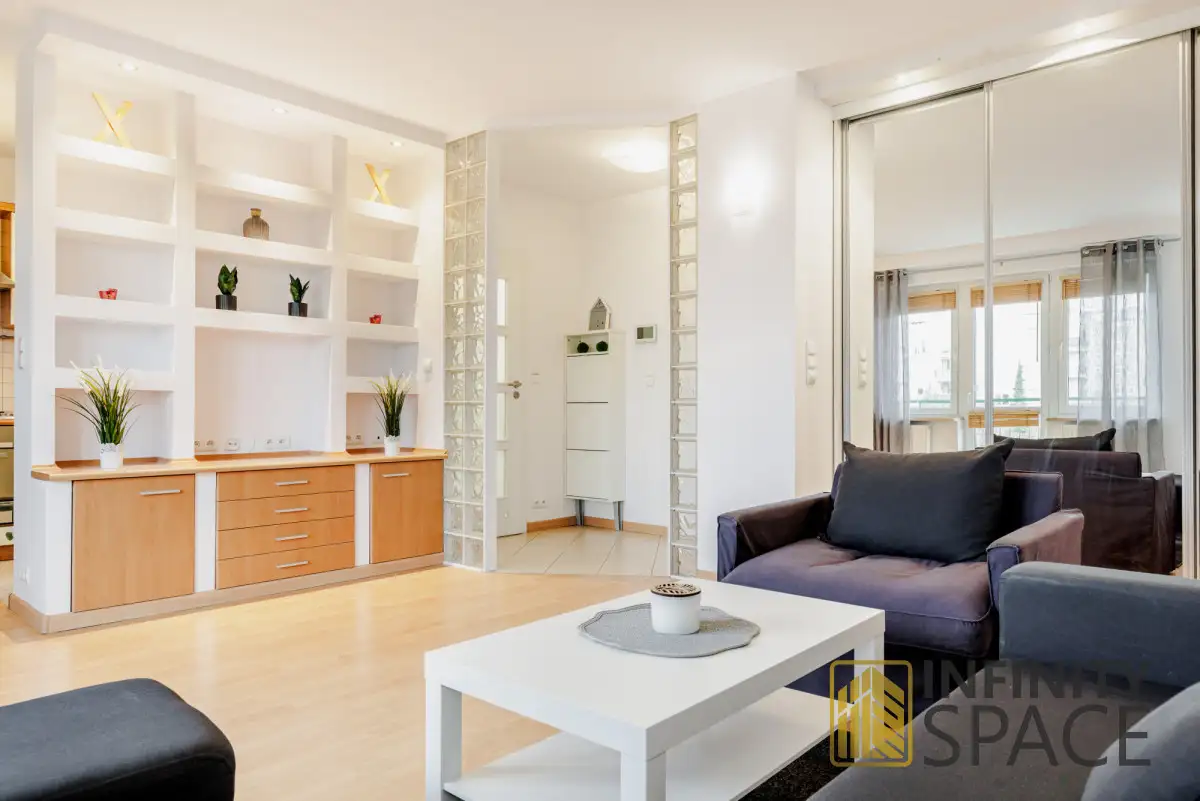 For rent spacious studio with a large balcony , with a convenient parking space in the underground garage, in a well-communicated location at 242 Górczewska Street (near Metro Station "Bemowo").APARTMENTThe spacious 37 sqm studio is a very well-lit (eastern exposure of windows) and well-appointed space.