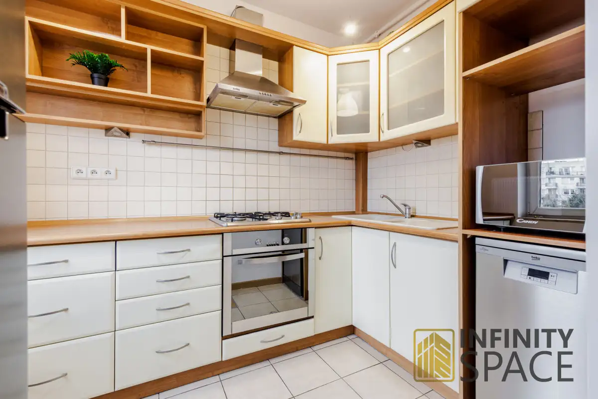 - the kitchen with window, connected to the living room, equipped with all necessary appliances and range (i.e. dishwasher, kettle, microwave, oven, refrigerator-freezer, basic kitchen range),