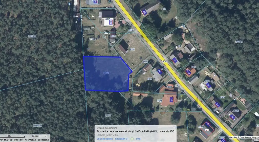 Działka położona w średnio atrakcyjnej miejscowości gminy Trzcianka, w sąsiedztwie terenów zabudowy mieszkaniowej i lasów. Kształt działki średnio korzystny, teren działki równy. Na działce posadowiony jest słup energetyczny, a nad częścią działki przebiega linia energetyczna. Nieruchomość nie jest objęta miejscowym planem zagospodarowania przestrzennego. Zgodnie ze Studium uwarunkowań i kierunków zagospodarowania przestrzennego gminy Trzcianka, zatwierdzonym przez Radę Miejską Trzcianki Uchwałą nr LXXII/750/23 z dnia 11 lipca 2013 r. nieruchomość położona jest pod tereny wielofunkcyjnej zabudowy wiejskiej (w tym zabudowy zagrodowej) oraz pod tereny lasów. Dział III i IV KW PO1T/00009665/9 nie wykazują żadnych obciążeń dot. ww. nieruchomości. Sprzedaż nieruchomości następuje w drodze przetargu ustnego ograniczonego do właścicieli nieruchomości sąsiednich.