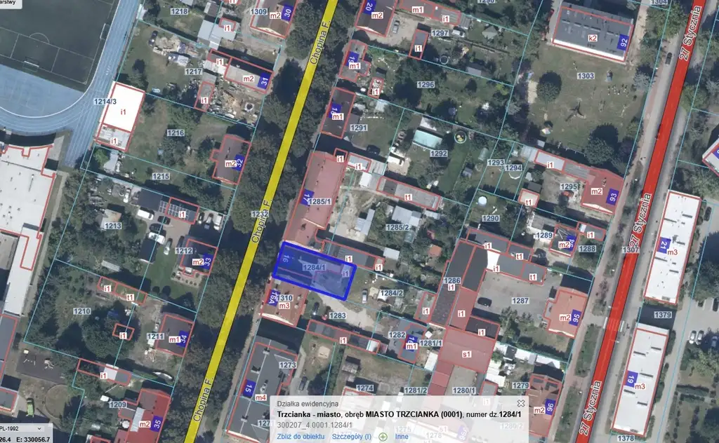 Zgodnie z miejscowym planem zagospodarowania przestrzennego miasta Trzcianki w rejonie Placu Pocztowego zatwierdzonym przez Radę Miejską Trzcianki Uchwałą nr XXXVII/326/17 z dnia 24 lipca 2017 r., działka przeznaczona jest pod tereny zabudowy mieszkaniowej wielorodzinnej z usługami. Przedmiotem sprzedaży jest lokal mieszkalny o pow. 42,81 m², składający się z kuchni o pow. 14,19 m², pokoju o pow. 25,44 m² i łazienki o pow. 3,18 m². Lokal położony na I piętrze budynku, w gorszym stanie technicznym i posiadający przeciętny standard. Wymaga remontu kapitalnego, łącznie z wymianą okien i instalacji. Dział III i IV KW PO1T/00022154/1 nie wykazują obciążeń dot. ww. lokalu.