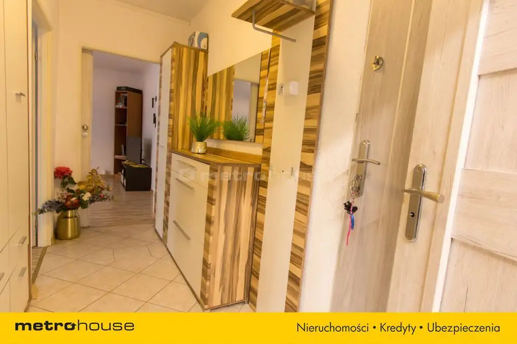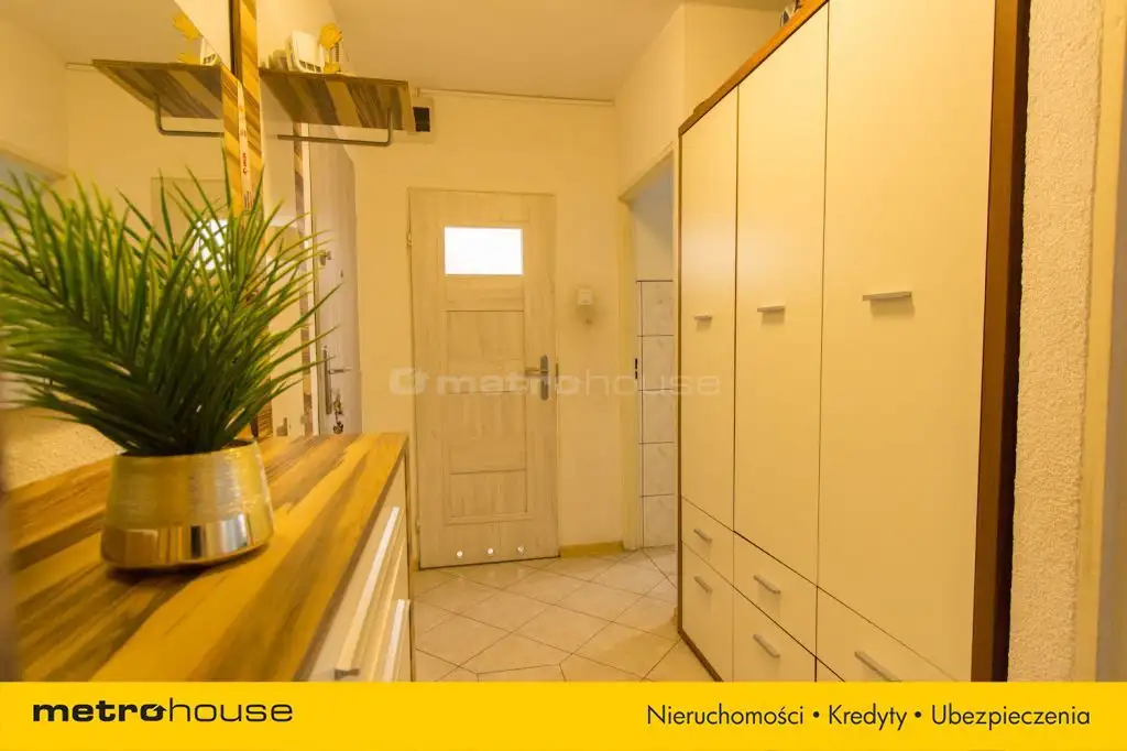 Kuchnia z glazurą i terakotą wyposażona w meble, sprzęty AGD oraz piecyk gazowy. W przedpokoju nowoczesna zabudowana szafa oraz komplet mebli z komodą i lustrem, na podłodze terakota. Drzwi wejściowe nowe - w kolorze jasnego drewna.