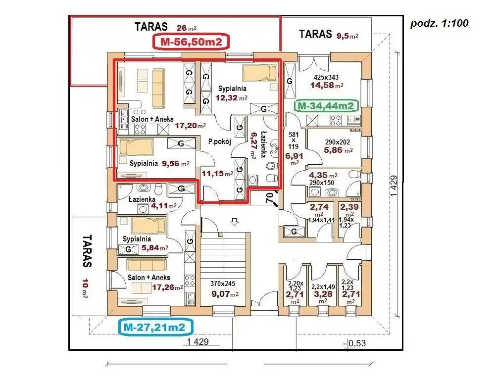 3-pokojowe 56,5m² z ogródkiem 180m²