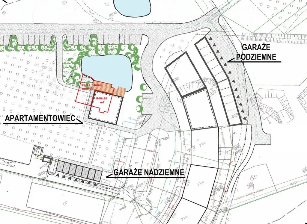 Oferowany lokal znajduje się na parterze ( jest oznaczony w projekcie na czerwono) , posiada ogród w którym możesz mile spędzać czas. Cena apartamentu w stanie deweloperskim z ogrodem, tarasem i stanowiskiem parkingowym wynosi 525.000,-zł. Do mieszkania przynależna piwnica o pow. 5 m², możliwe jest dokupienie garażu podziemnego o pow. 20m² w cenie promocyjnej 55.000,-zł (do wyczerpania). Mieszkanie niniejsze składa się z salonu z aneksem kuchennym i tarasem, przedpokoju, 2 sypialni, i łazienki. Z własnością