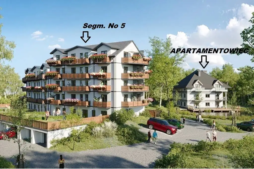 Zapraszamy do obejrzenia lokalizacji segmentu nr 5, lub sąsiedniego Apartamentowca, oraz infrastruktury osiedla. Znakomitym dodatkiem do całości jest możliwość korzystania w pobliskim parku z basenów dla dorosłych i dzieci (od czerwca w nowej lokalizacji w parku), stawu kąpielowego i piaszczystej plaży, oraz innych atrakcji.
