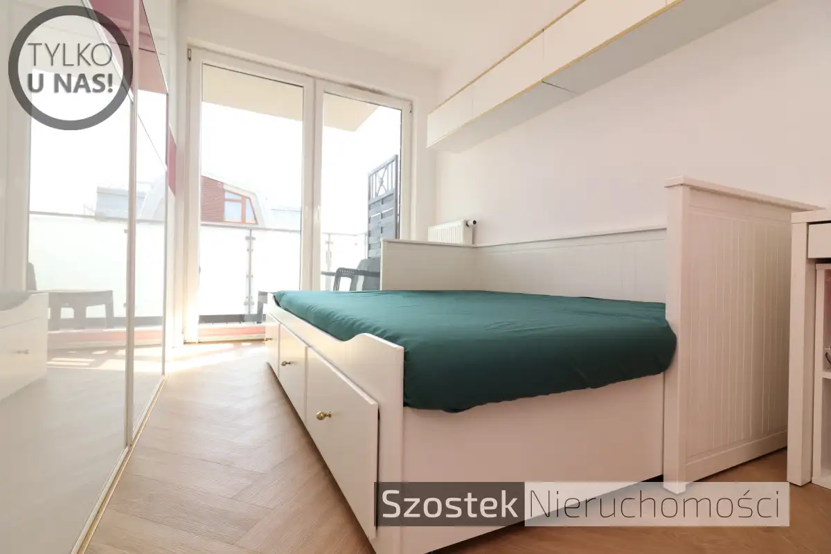 Mieszkanie o powierzchni 46,13 m², zlokalizowane na 2 piętrze, kameralnego, 3 piętrowego budynku. Układ pomieszczeń obejmuje salon, sypialnię, aneks kuchenny, łazienkę oraz przedpokój. Ekspozycja okien na wschód i południe co zapewnia dobre nasłonecznienie, ale także komfort użytkowania popołudniami. Wspomniany wcześniej duży balkon oraz prywatne miejsce postojowe pod samym budynkiem (dodatkowo płatne: 35 000zł).