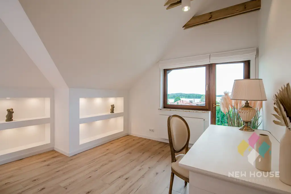 Niezwykle estetyczny dom w turystycznej wsi na granicy Warmii z Mazurami. Z okien - widok na jezioro znajdujące się w linii prostej 160 m od domu. Elegancko urządzony w sprzęty najwyższej jakości. Ze względu na bliskość miasta i dobre połączenie komunikacyjne – idealne miejsce dla ludzi aktywnych zawodowo. Z drugiej strony lokalizacja wśród lasów i jezior oraz wyposażenie domu i ogrodu sprzyjać będzie spokojnemu relaksowi.