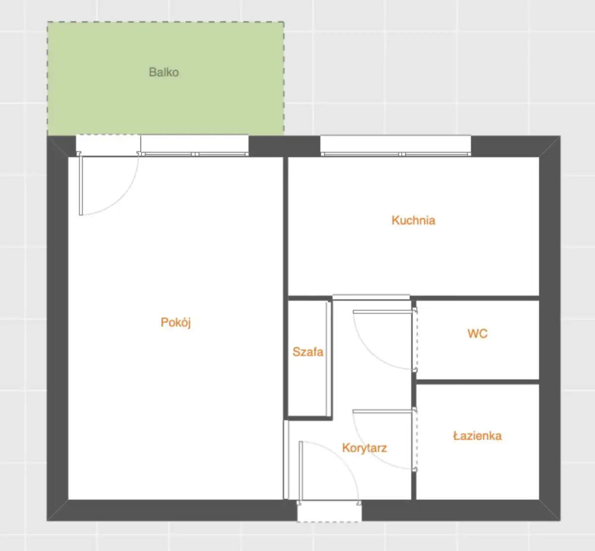 Mieszkanie składa się z przestronnego pokoju z dużym balkonem, osobnej kuchni, przedpokoju z wnęką na szafę oraz oddzielnej toalety i łazienki. Mieszkanie wymaga odświeżenia, co daje możliwość dostosowania wnętrza do własnych upodobań. Instalacje są miedziane, co zapewnia bezpieczeństwo i nowoczesny standard. Ogrzewanie oraz ciepła i zimna woda są miejskie, co gwarantuje komfort i wygodę użytkowania.