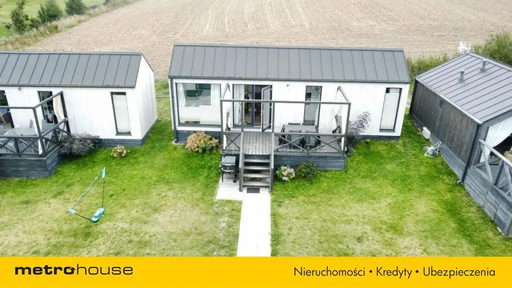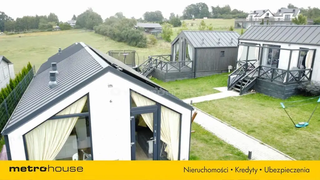 Posadowione 6 domków całorocznych o powierzchni 35m² + 15m² tarasy.