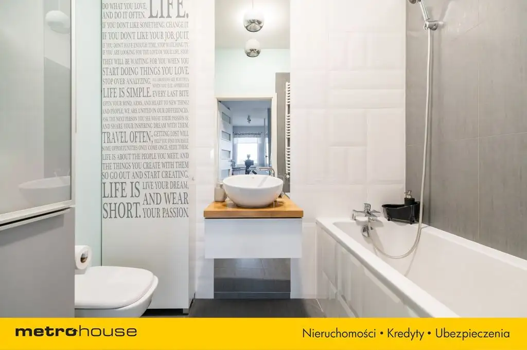 - oraz przytulną łazienką urządzoną w jasnych kolorach z niemałą wanną.