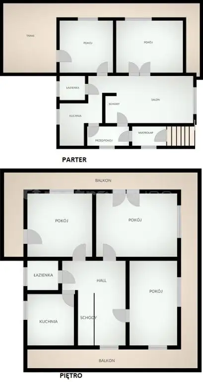 Parter i piętro to przestrzeń mieszkalna z przestronnymi pokojami z widokiem na park Julianowski.