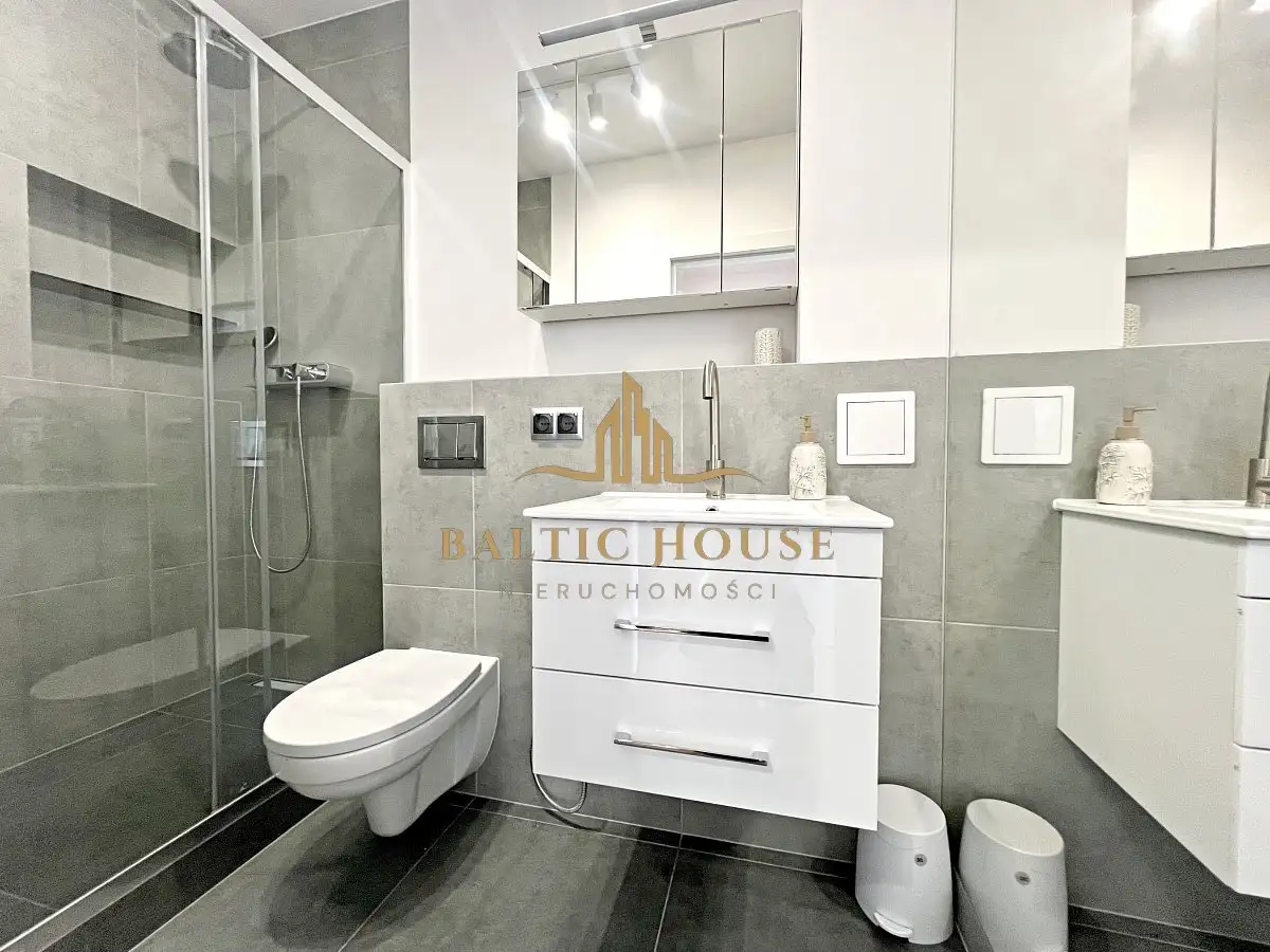 - nowoczesna łazienka z przestronnym prysznicem i WC.
