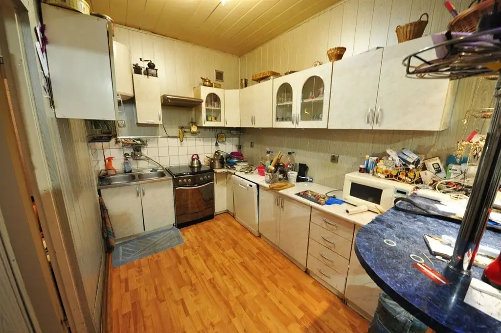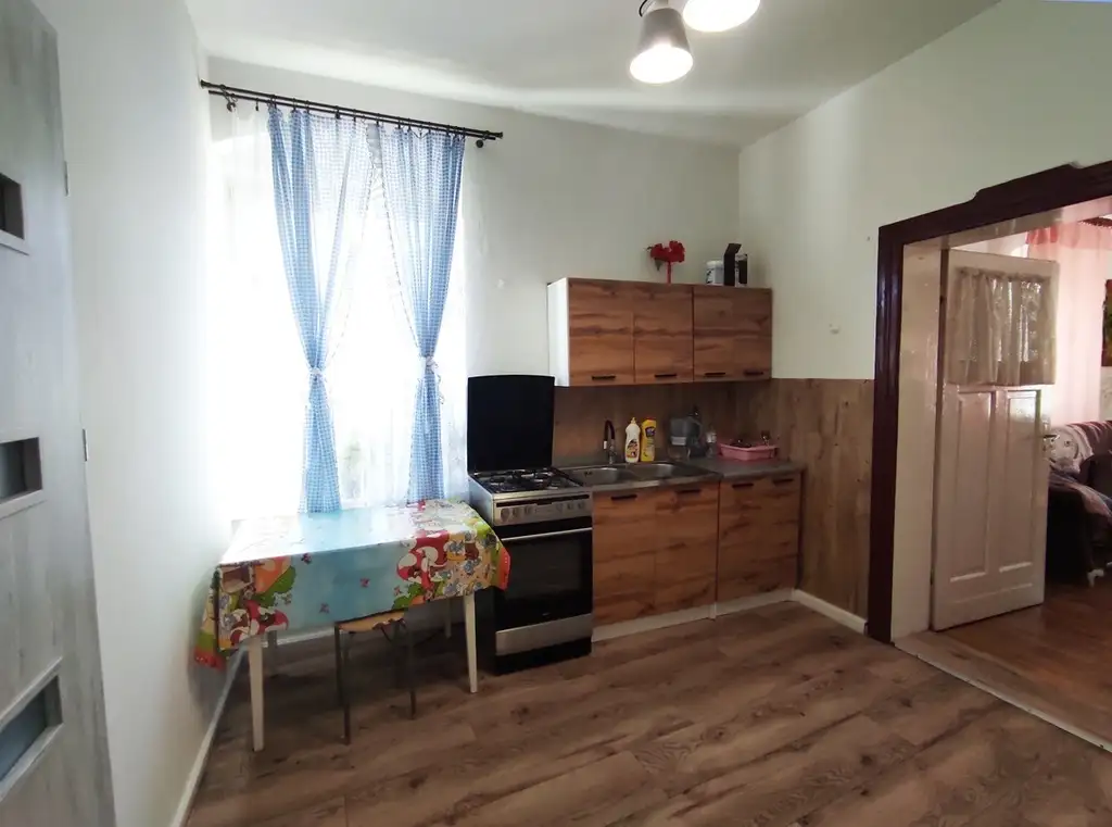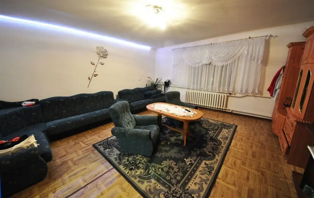 Przestronny, wolnostojący dom jednorodzinny, wielorodzinny, składa się z 11 pokoi, 3 kuchni, 3 łazienek, pomieszczeń gospodarczych, korytarzy, 2 holi ze schodami. Na parterze 5 pokoi, kuchnia, pomieszczenie gospodarcze, korytarz, hol ze schodami o łącznej powierzchni około186,30 m².