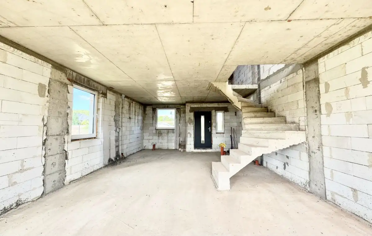 Piętro obejmuje trzy sypialnie (11,91 m², 11,39 m² i 9,49 m²) oraz łazienkę o powierzchni 7,62 m². Wykonane betonowe schody zapewniają swobodne poruszanie się między kondygnacjami i ułatwiają dalsze prace wykończeniowe.