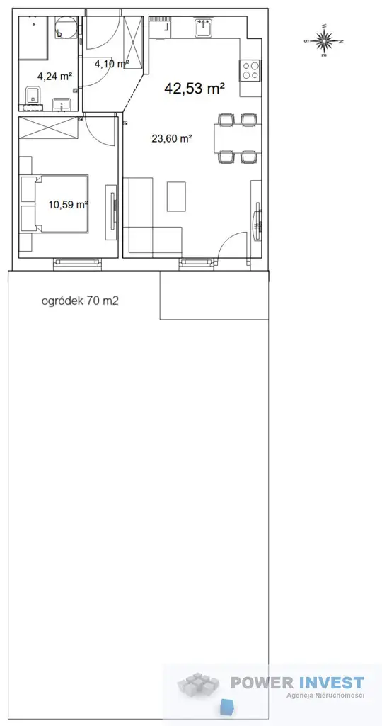 Mieszkanie znajduje się na parterze. Lokal ma powierzchnię 42,53 m² powierzchni użytkowej i składa się z: