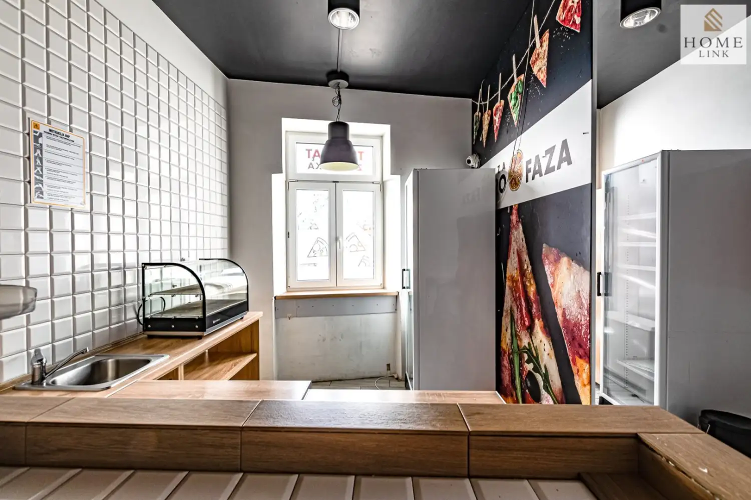 i hydrauliczna. Na podłodze terakota. Ogrzewanie grzejnikami elektrycznymi. Ostatnio prowadzona działalność to pizzeria (pizza sprzedawana na wynos).