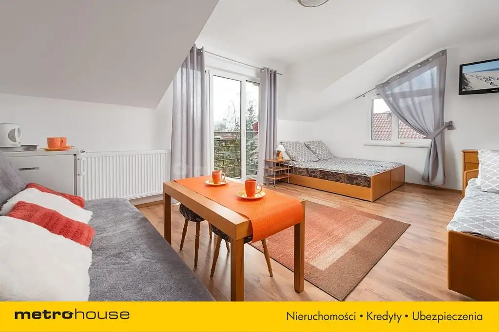 Na 1 poziomiw mamy część prywatną właścicieli, która składa się z przestronnego salonu z kominkiem i wyjściem na duży taras, aneksu kuchennego, 2 sypialni, łazienki z WC . Na tym poziomie mamy również kolejne 4 pokoje dla gości.