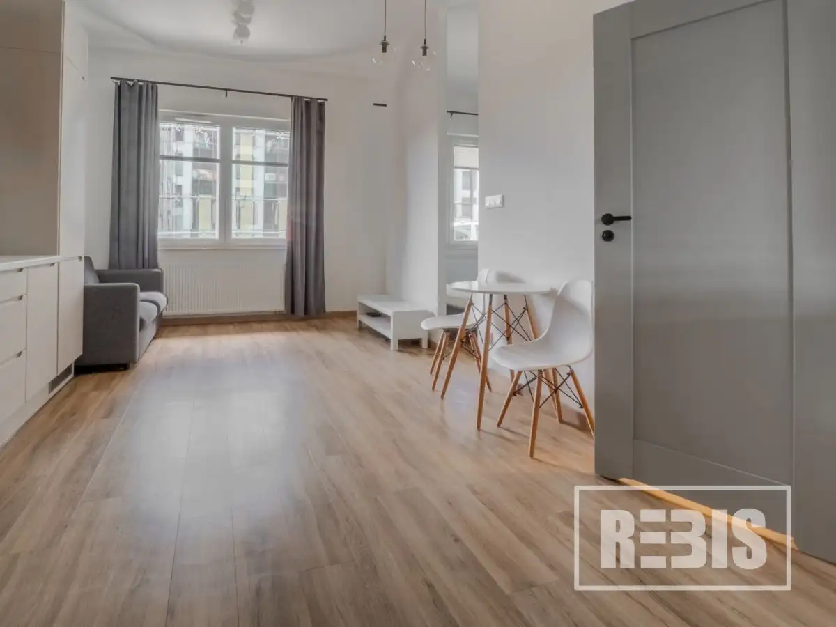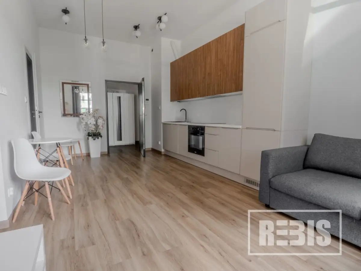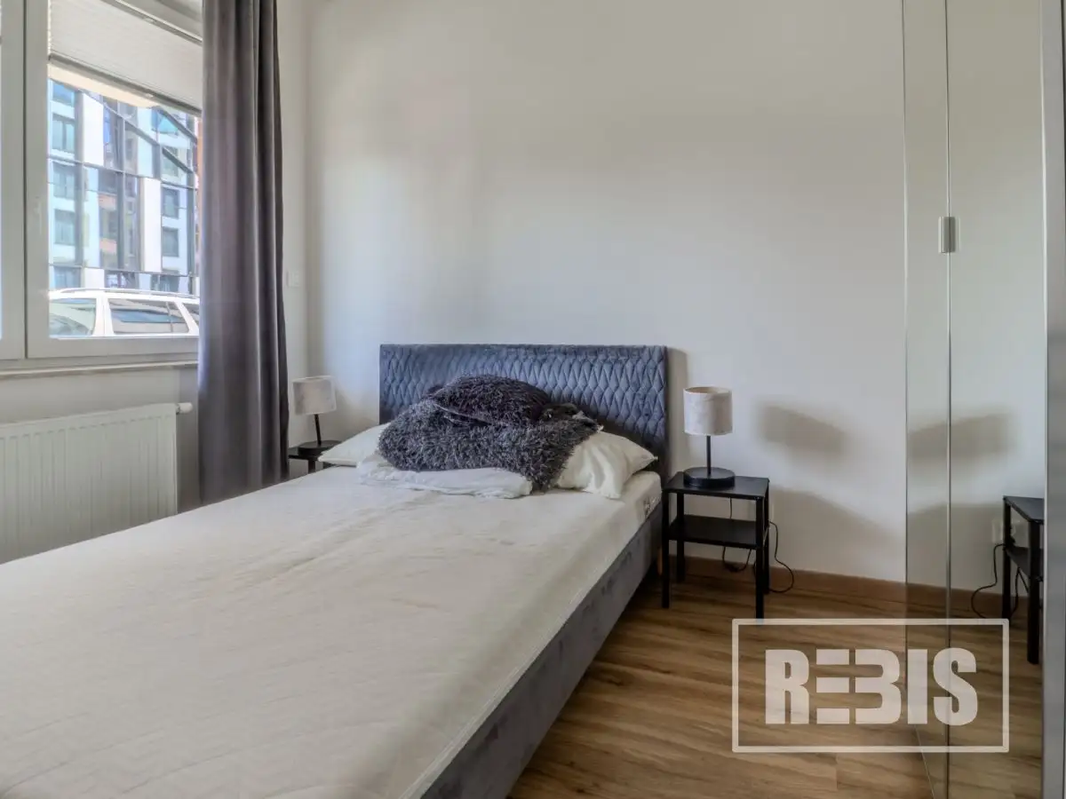 DESCRIPTION OF THE PROPERTYThe beautiful flat is located on the ground floor of a six-storey apartment building. It has been tastefully finished with attention to detail. Its area consists of: an open kitchen combined with a spacious living room, a large bathroom and a comfortable bedroom.