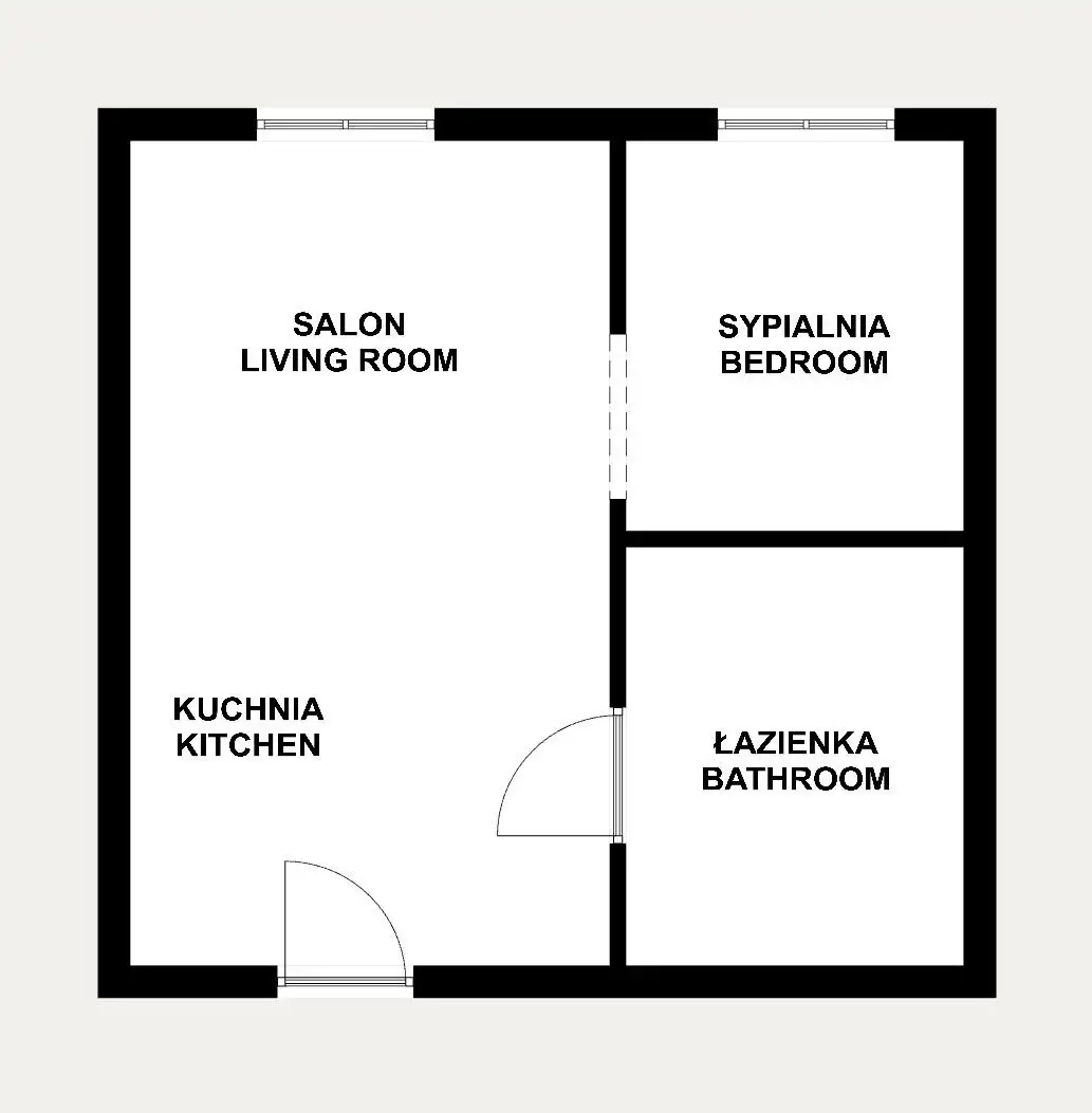 Pokoje: sypialnia, salon, otwarta kuchnia, łazienka