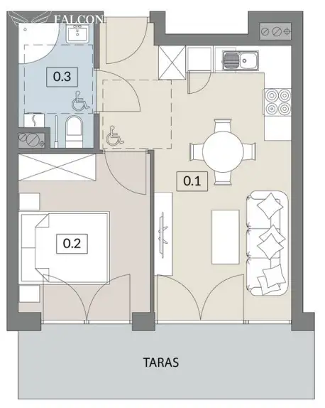 2 pokojowego apartamentu z tarasem w stanie deweloperskim