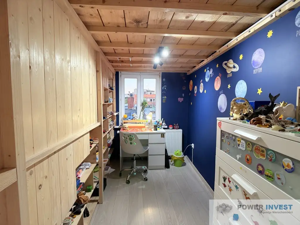 Pokój dziecięcy (ok. 23 m²) – z wyjątkową konstrukcją zapewniającą każdemu dziecku prywatność: strefa nauki, zabawy i antresole do spania.