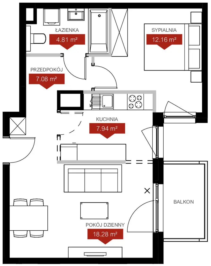 2 - pokojowego mieszkania z balkonem w stanie deweloperskim w Poznaniu