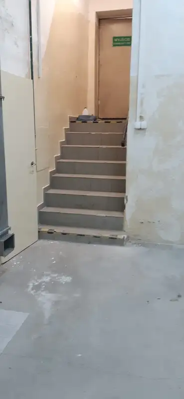 Pomieszczenia socjalne zajmują pow. ponad 11 m² i znajdują się na poziomie -0,5 a pozostała cześć pomieszczeń na poziomie -1. Łącznie 5 pomieszczeń.