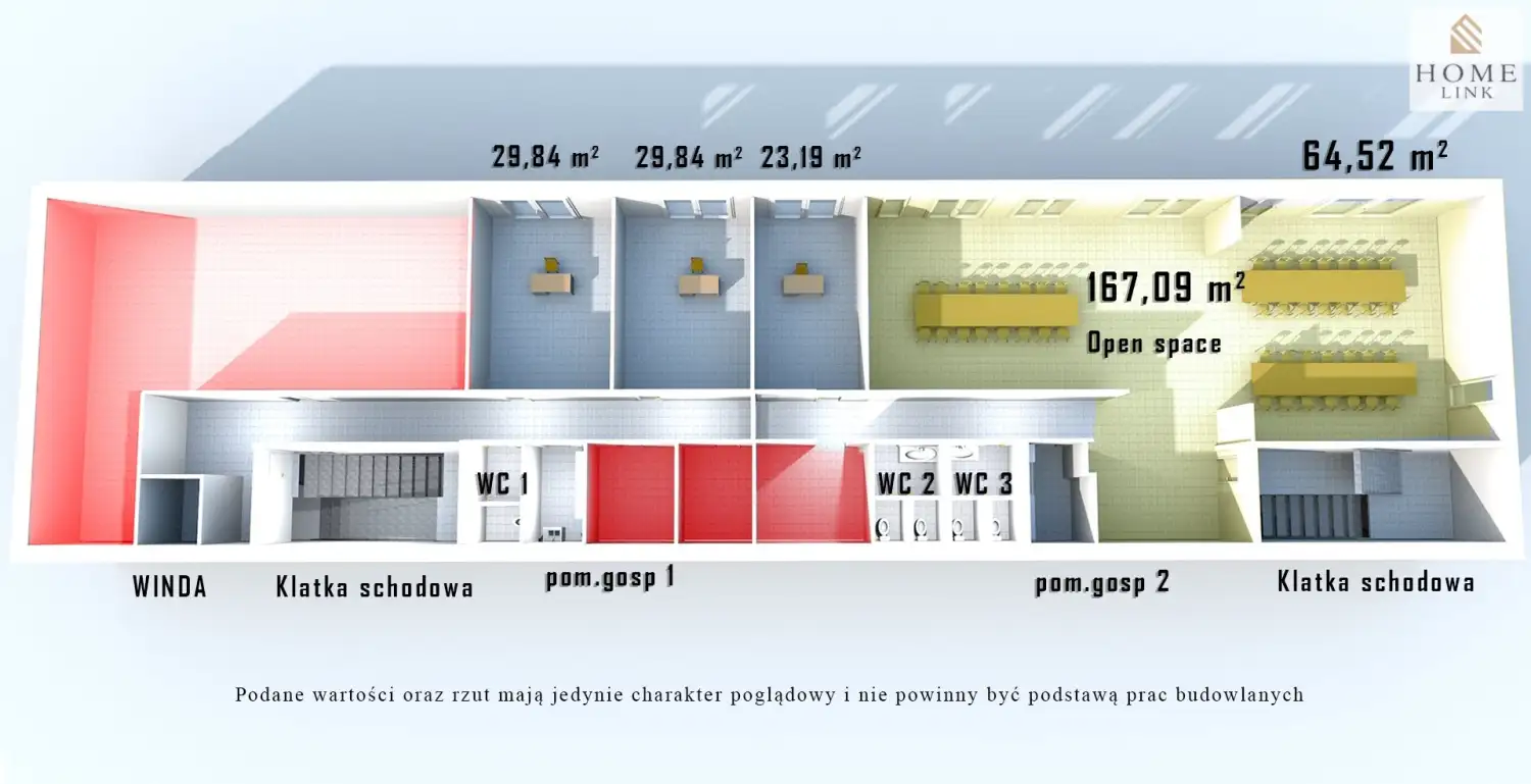 Pomieszczenia zaznaczone na czerwono nie są przedmiotem oferty najmu .