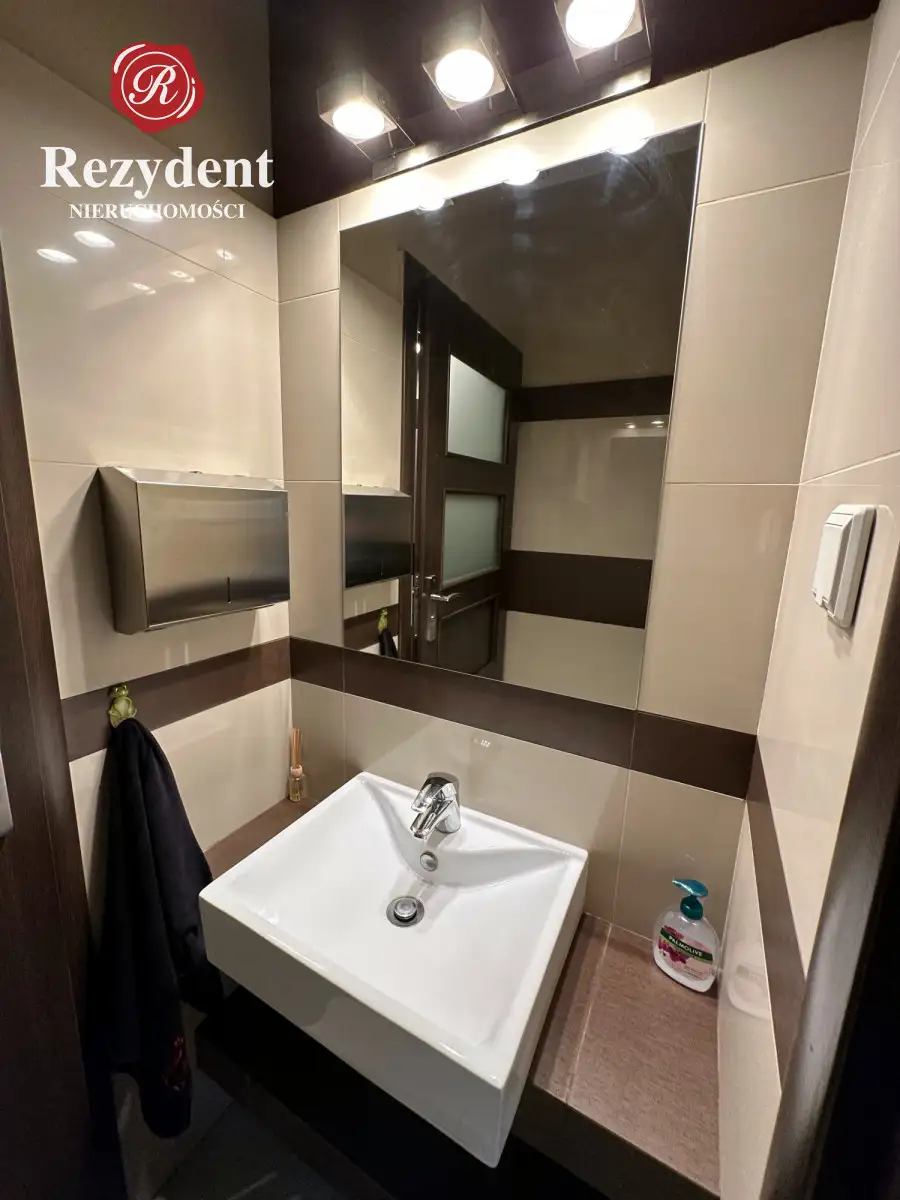 2. Części biurowej z dużym pomieszczeniem sprzedaży (otwarty hall z miejscami na kilka stanowisk do kontaktu z klientami-54m2, osobne biuro idealne dla osoby zarządzającej firmą - ponad 25m², osobna toaleta 3,25m2, aneks kuchenny w ciągu komunikacyjnym ponad 8m2.