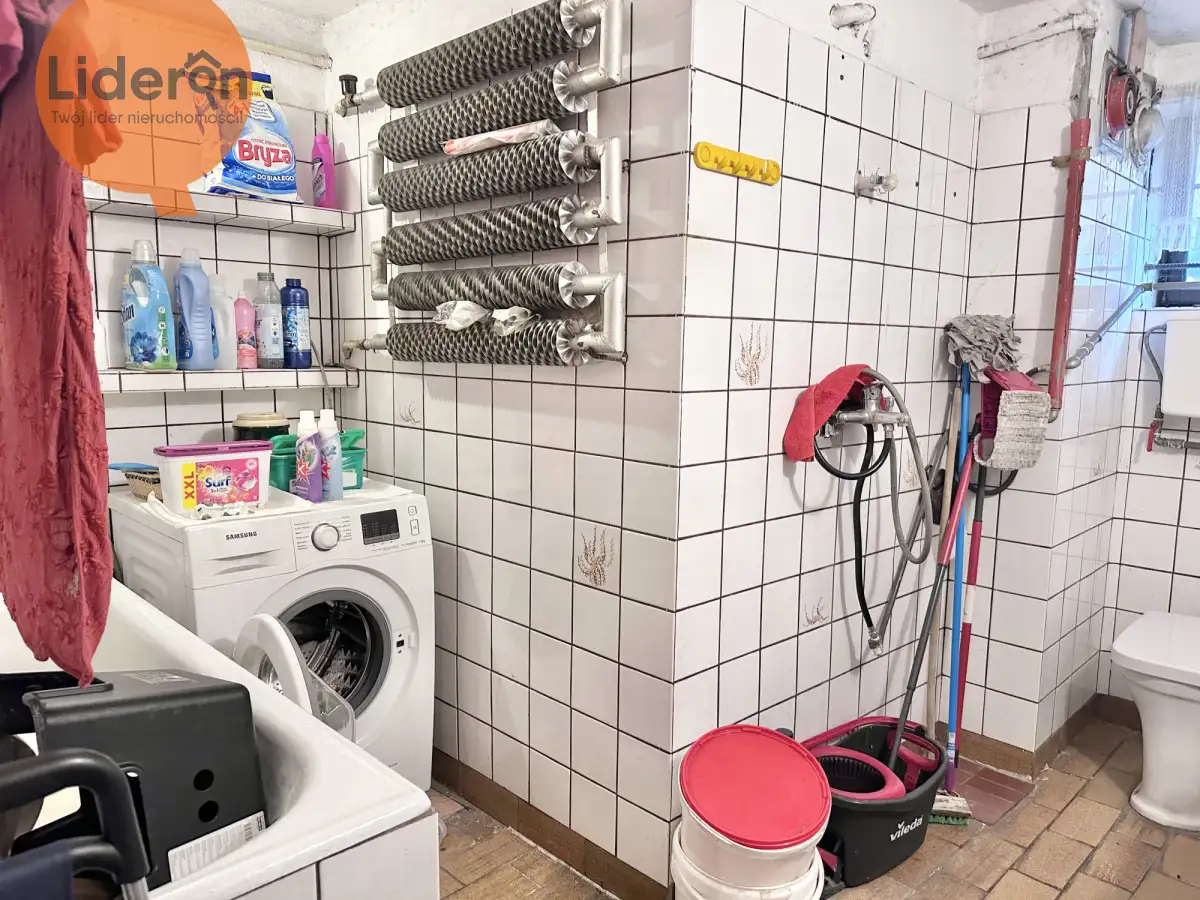 - Piwnica z pralnią (z wanną i WC) oraz garażem pełniącym obecnie funkcję praktycznego schowka