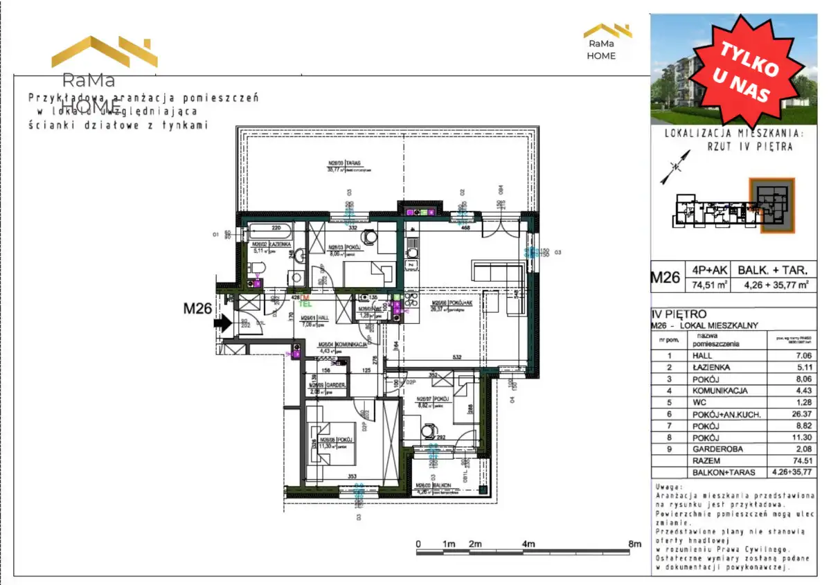 - mieszkanie na ostatnim piętrze z tarasem i balkonem to prawdziwa rzadkość,