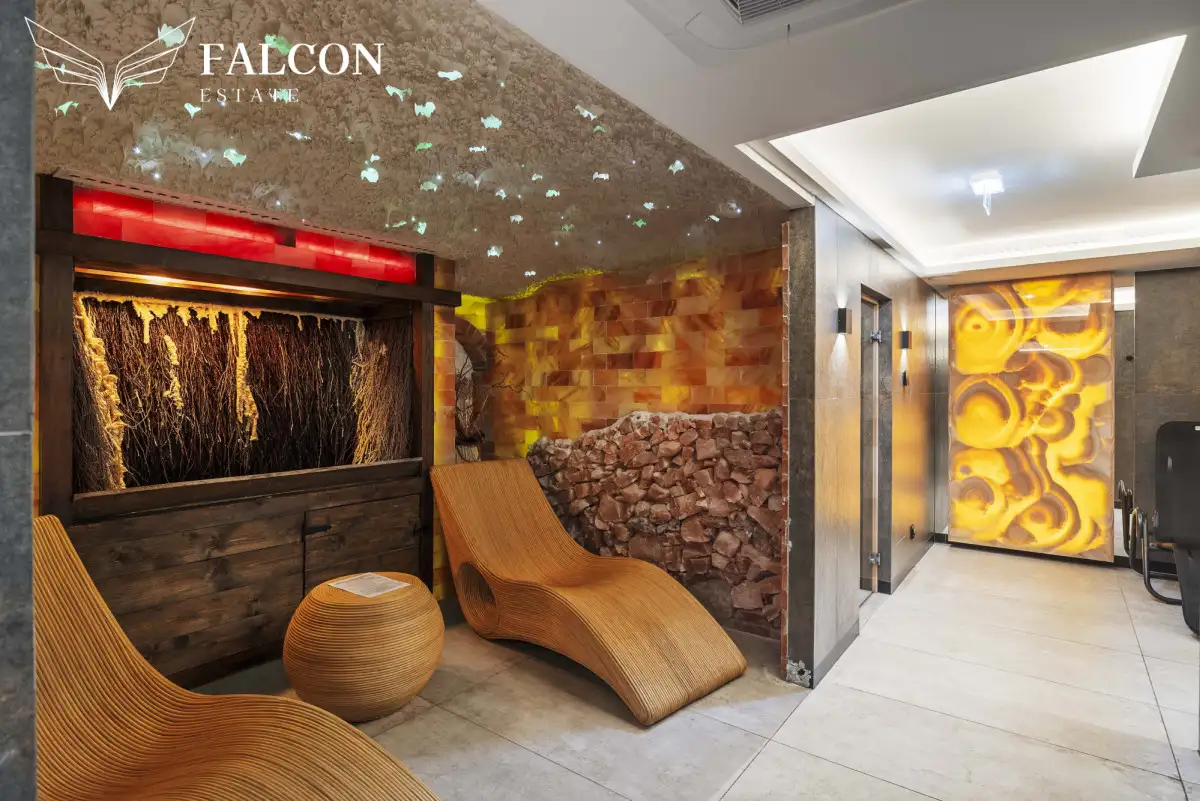 - Strefa spa, a w niej: sauna sucha, sauna infrared, łaźnia parowa, tężnia solankowa