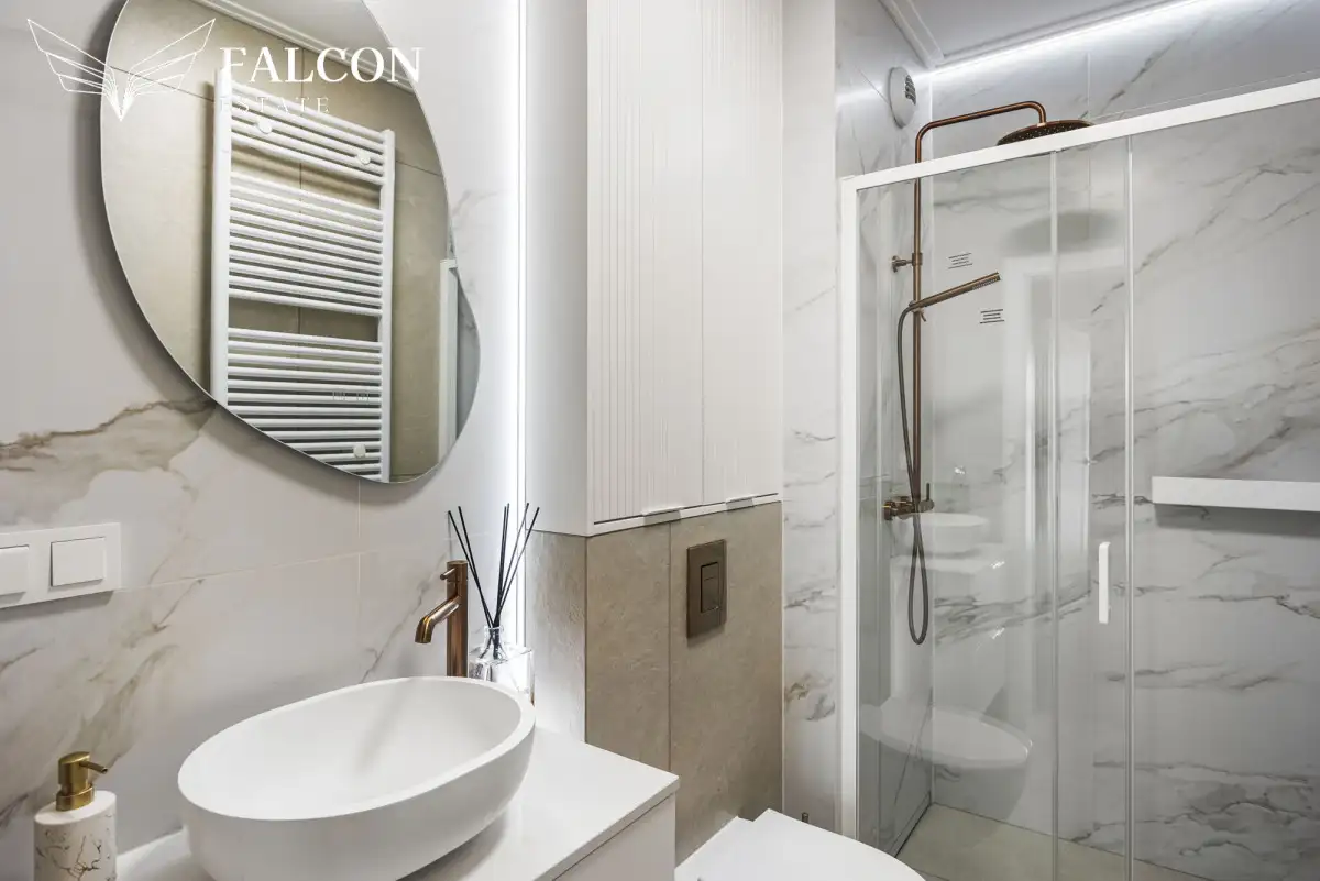 Mieszkanie wyposażone jest w ogrzewanie kanałowe i klimatyzację
