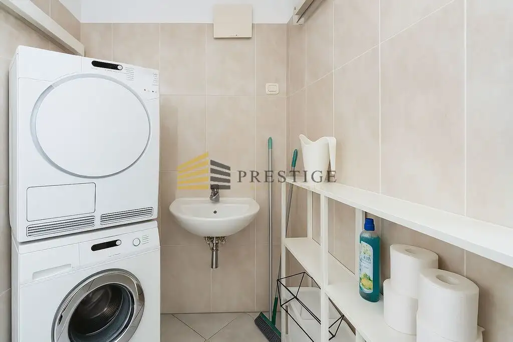 Apartament jest w pełni klimatyzowany. Dodatkowe pomieszczenie gospodarcze zostało zlokalizowane przy łazience.