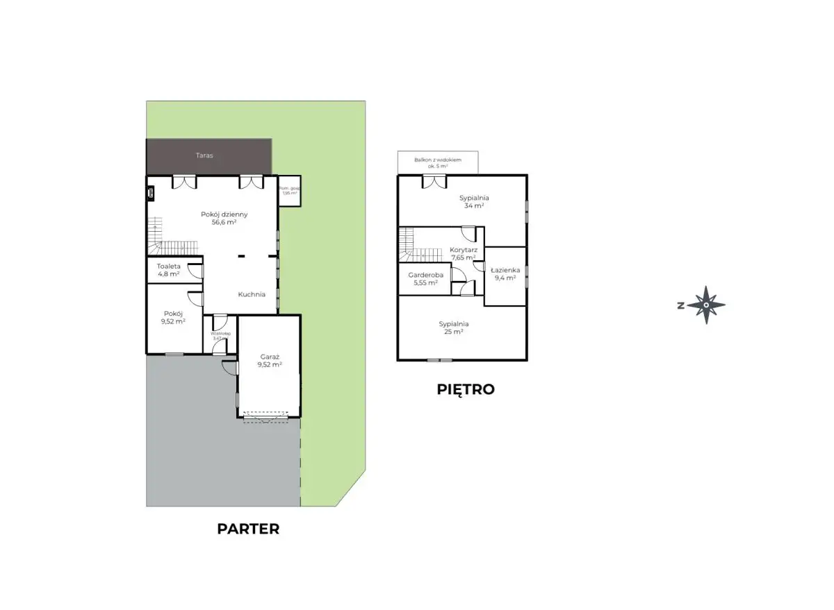 Dom posiada trzystronną ekspozycję okien (zachód-południ-wschód), co zapewnia optymalne doświetlenie o każdej porze dnia.