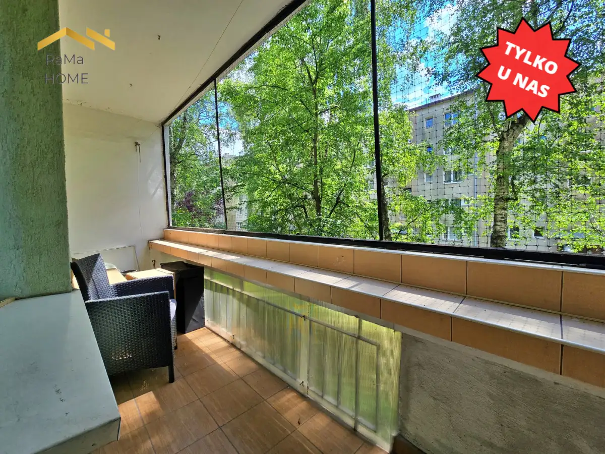 Z jednego z pokoi jest wyjście na balkon typu loggia (5,90m²), który osłonięty jest pobliskimi drzewami. Do