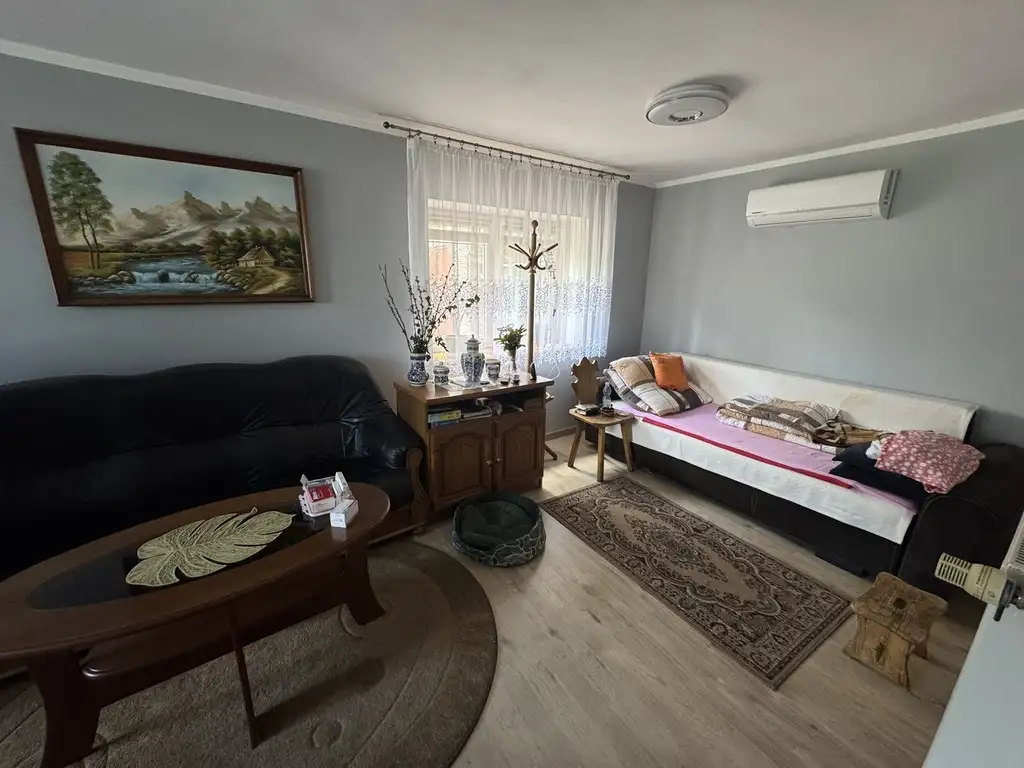 Główne źródło ogrzewania stanowi piec węglowy lecz w jednych z pokoi na parterze zainstalowano klimatyzację, która zarówno ochłodzi nas w upalne dni jaki i ogrzeje pomieszczenia w chłodniejsze.