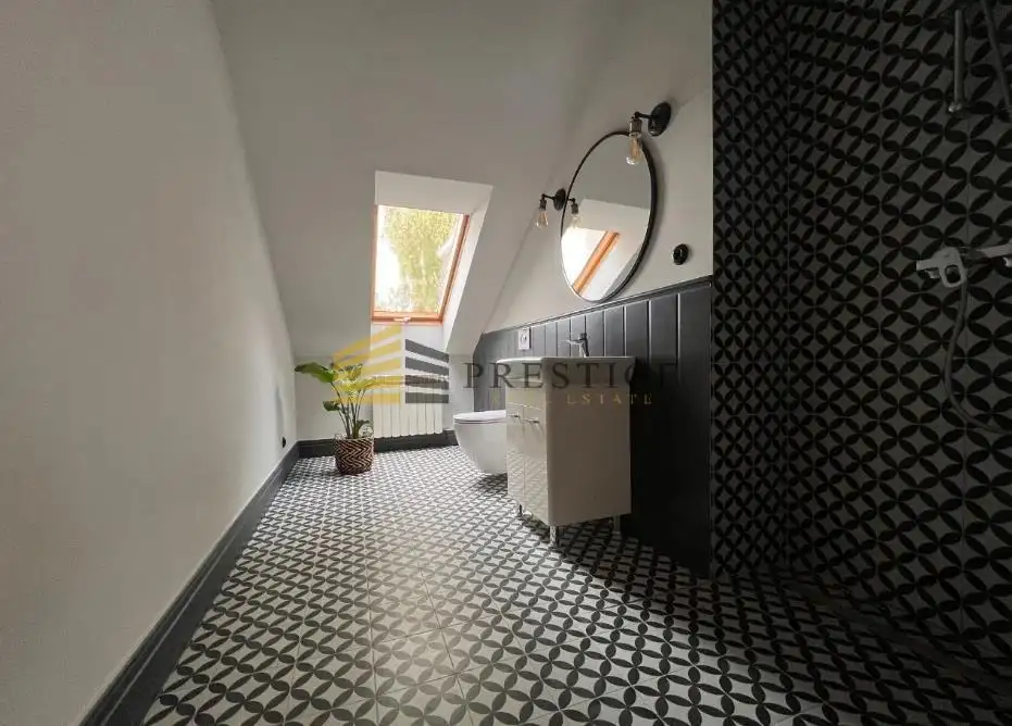 This place allows you to experience the peaceful atmosphere of a green area, reminiscent of Masurian landscapes, every day, while being close to the city center. The house is surrounded by a large garden, two terraces and offers spaciousness and modern comfort. After a general renovation, the interior exudes freshness, smelling of new furniture and wooden floors.