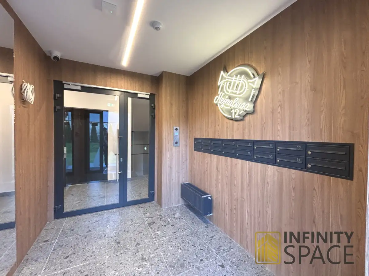 The property is located in a new development at 12 Hejnałowa Street, in the Włochy district (Raków area).