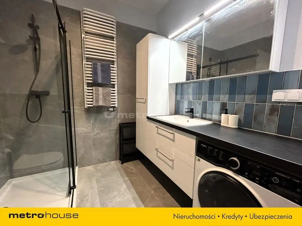 Mieszkanie na Gocławiu w nowym budynku, niedawno oddanym do użytku. Dobry standard części wspólnych. Mieszkanie wykończone w wysokim standardzie, umeblowane i wyposażone we wszystko co zapewni najemcy doskonały komfort pobytu. Mieszkanie składa się z obszernego pokoju dziennego z wyjściem na spora loggię, aneksu kuchennego ze sprzętem AGD dobrej jakości. W osobnej sypialni z podwójnym łóżkiem znajduje się pojemna szafa. W dużej łazience przestronna kabina prysznicowa, sporo szafek na niezbędne kosmetyki i środki czystości. Jest tez duża pralka. Z okien mieszkania rozpościera się piękny widok na panoramę miasta i most Siekierkowski. Dzięki wysokości dziesiątego piętra, widoku nic nie przesłania. Komfortu