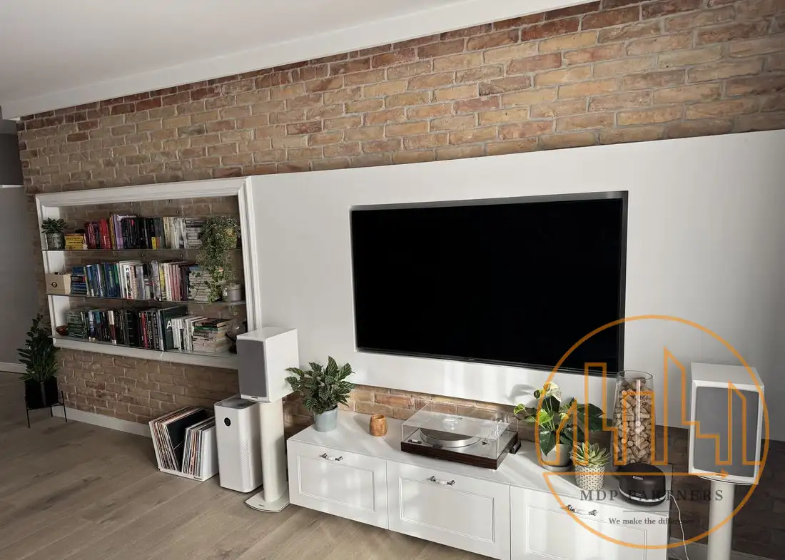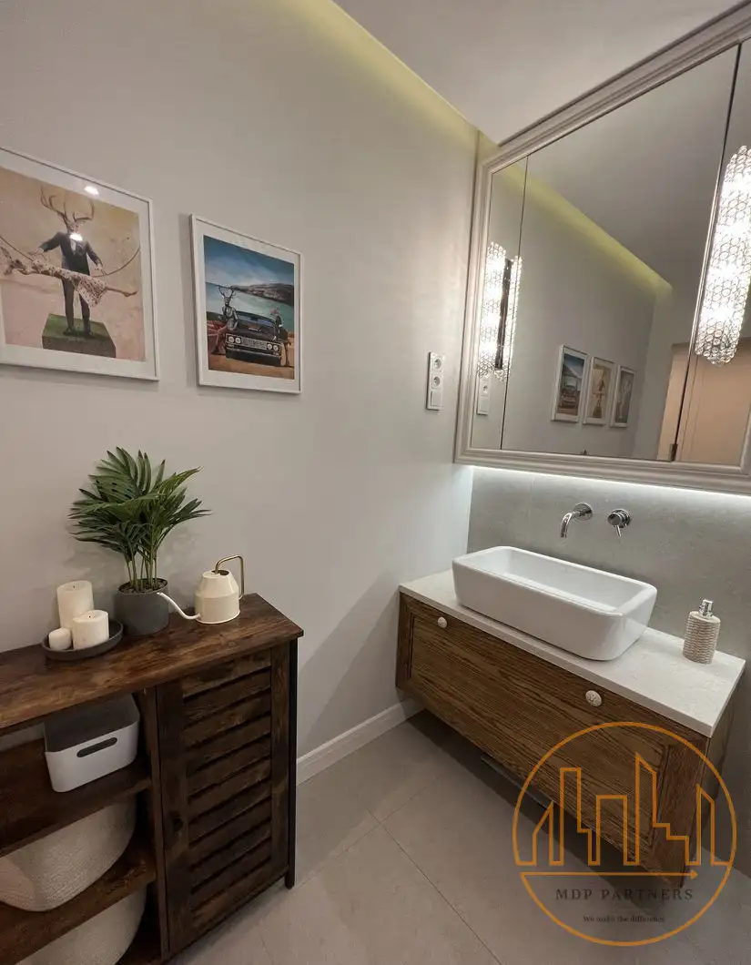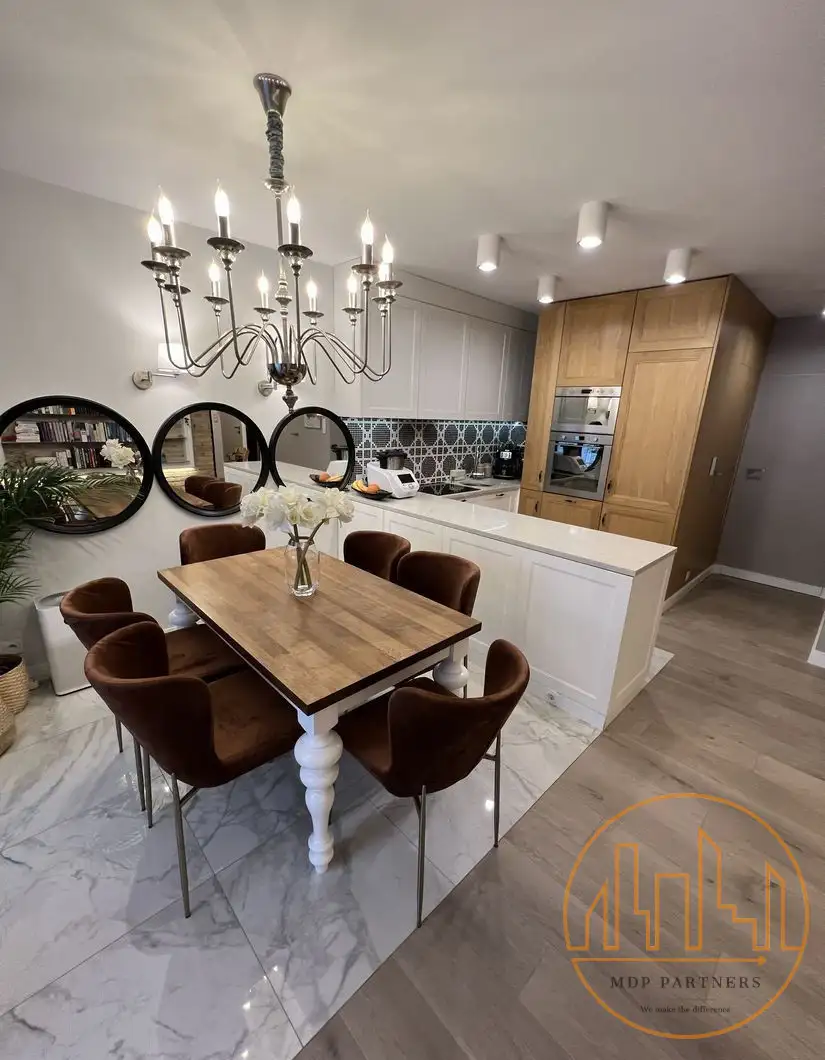 Lokal został zaprojektowany przez architekta wnętrz i wykończony w wysokim standardzie z dbałością o każdy detal.Mieszkanie jest gotowe do wprowadzenia - nie wymaga żadnych nakładów finansowych ani remontu.Całkowita powierzchnia mieszkania wynosząca 75 m² została funkcjonalnie podzielona na :