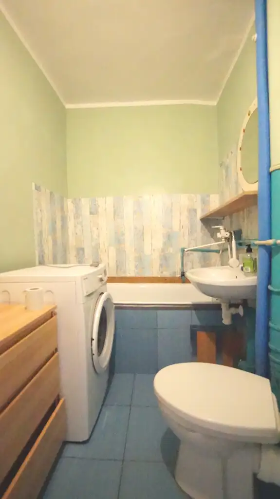 Lokal w standardzie do remontu : ściany w gładziach, na posadzkach panele , łazienka wytapetowana z wanną, kuchnia : meble + sprzęt AGD . Okna PCV .