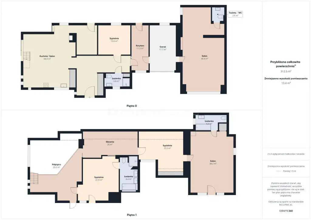 7 pokoi , 4 łazienki, w tym pokój multimedialny i siłownia oraz specjalnie wydzielone pomieszczenie idealne pod działalność gospodarczą-gabinet, studio lub biuro z osobnym wejściem.