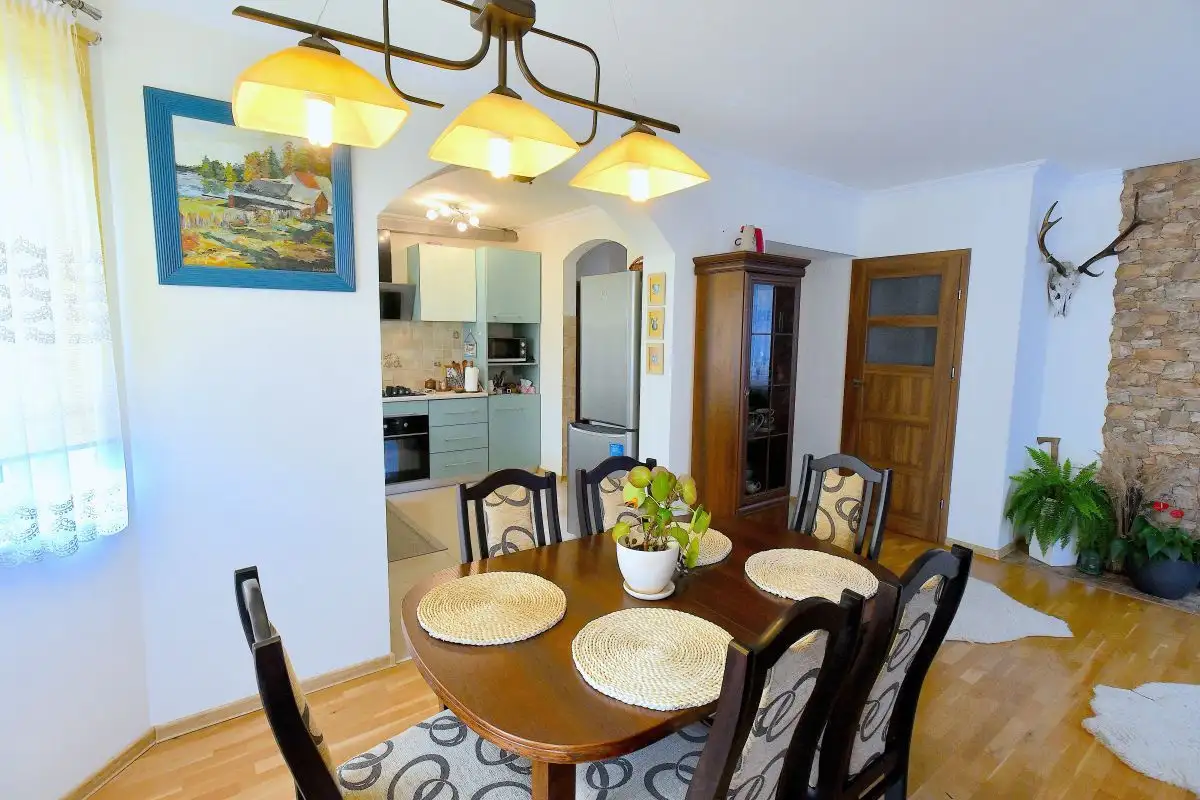 Nieruchomość położona jest w spokojnej, cichej okolicy z pięknymi widokami na górzyste tereny. To idealne miejsce dla osób ceniących bliskość natury, a jednocześnie posiadających łatwy dostęp do lokalnej infrastruktury.
