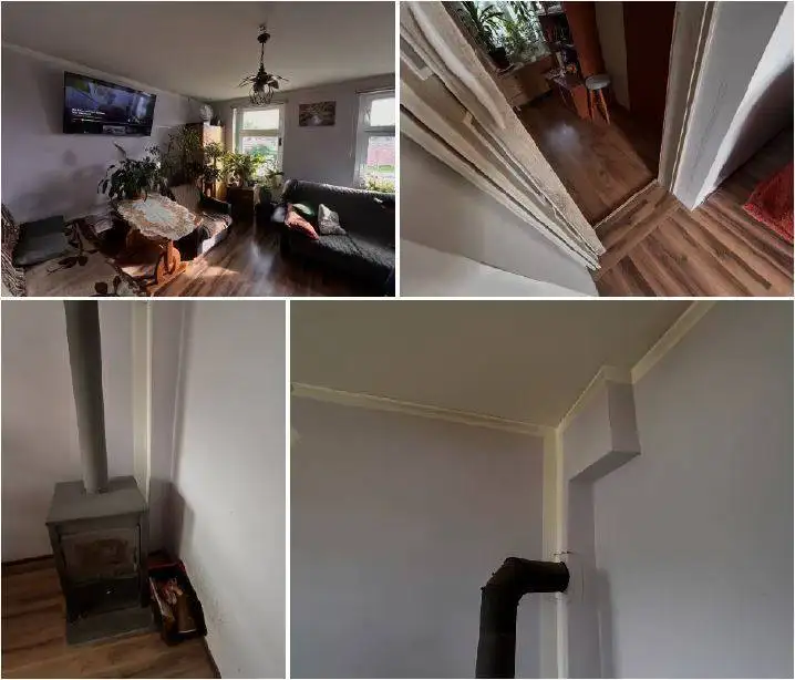 Budynek mieszkalny w zabudowie wolnostojącej, parterowy z poddaszem użytkowym, podpiwniczonym. Konstrukcja budynku murowana. Powierzchnia użytkowa: 80,0 m² (powierzchnia obliczona na podstawie obmiaru w trakcie oględzin /parter/ i przemnożona przez wsp. 1,5 uwzględniający powierzchnię poddasza: 53,2 x 1,5 = 79,8 ≈ 80 m²). Parter budynku: 2 pokoje, łazienka, kuchnia, komunikacja; poddasze: brak dostępu (pomieszczenia użytkowane przez członka rodziny) Piwnica: brak wyrażenia zgody na wejście do piwnicy. W budynku widoczne oznaki miejscowych zawilgoceń. Ogólny standard budynku określono jako niski. Budynek z początku XX wieku, konstrukcji murowanej. Strop nad parterem drewniany + glina, słoma. Stolarka okienna PCV oraz drewniana. Dach konstrukcji drewnianej, kryty dachówką i papa. Schody na poddasze drewniane. Instalacje: - Elektryczna, - Wodociągowa, - Kanalizacyjna, - Centralnego ogrzewania brak, piecyk wolnostojący w pokoju. Budynek mieszkalny jednorodzinny został wzniesiony w technologii tradycyjnej, murowany (na początku XX w.); widoczne znaczne ślady zużycia technicznego wynikającego z wieku, jakości wykonawstwa budowlanego oraz eksploatacji obiektu. Stopień zużycia technicznego określono w oparciu o wiek budynku oraz trwałość elementów konstrukcyjnych i wykończeniowych na poziomie 50 %; widoczne zarysowania, pęknięcia na elewacji budynku, również wewnątrz. widoczne miejsca zawilgoceń (budynek nieocieplony, brak centralnego ogrzewania). Ogólne warunki utrzymania dobre. Stan techniczno-użytkowy przyjęto jako średni. Część przedmiotu sprzedaży jest obciążony prawem dożywocia (dożywotnik - wiek 92 lata).