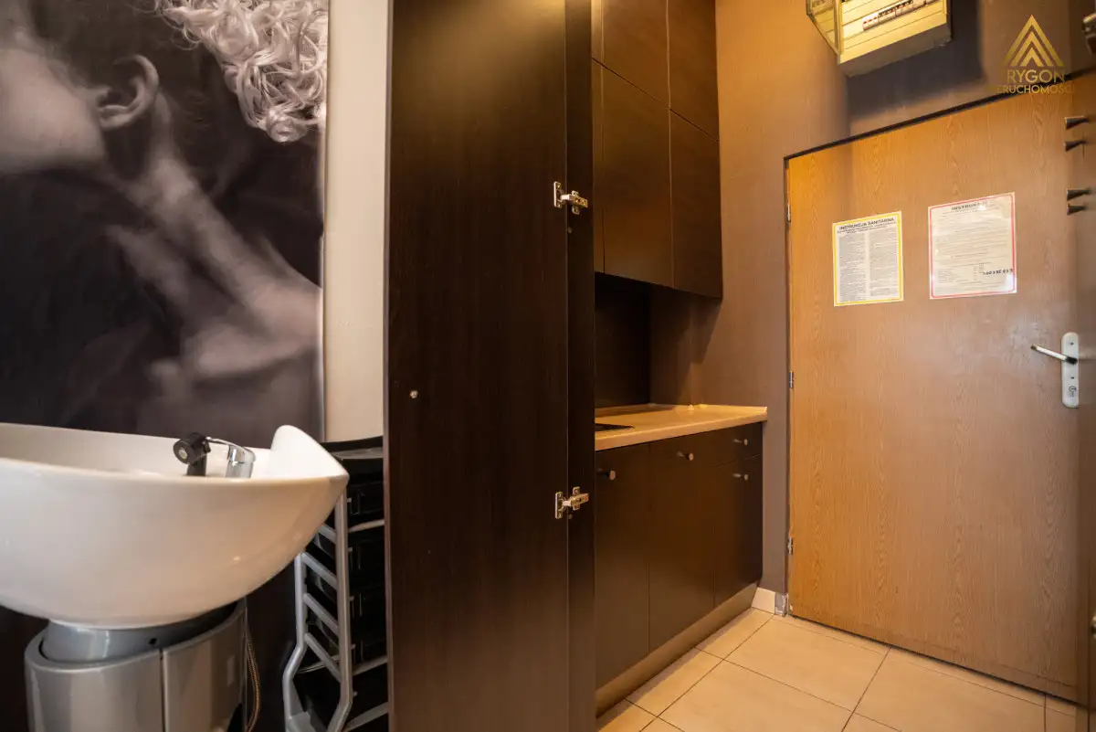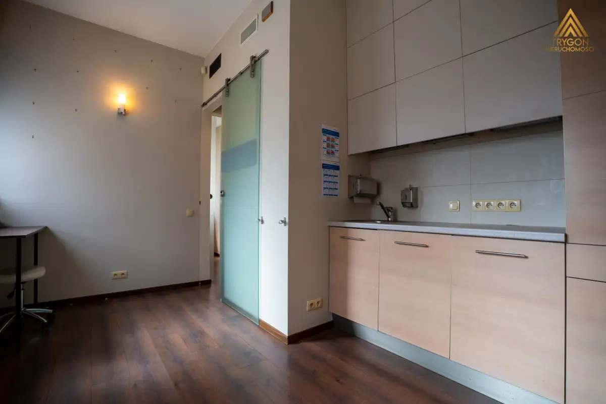 Lokal o powierzchni 53,80 m² usytuowany na parterze budynku z 2007 roku. Posiada dwa wejścia od strony frontu budynku oraz od klatki schodowej - lokal jest przygotowany dla osób niepełnosprawnych. Posiada osobną przestrzeń dla personelu, dwa osobne gabinety ( medycyna estetyczna, psycholog, fizjoterapia ) główną salę obsługi klienta wraz z recepcją oraz łazienkę z prysznicem, toaletą oraz osobną toaletę. Lokal wyposażony w rolety antywłamaniowe, rolety zaciemniające oraz monitoring.