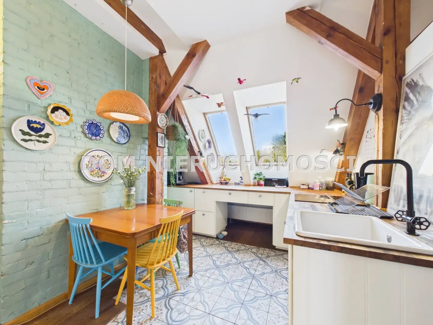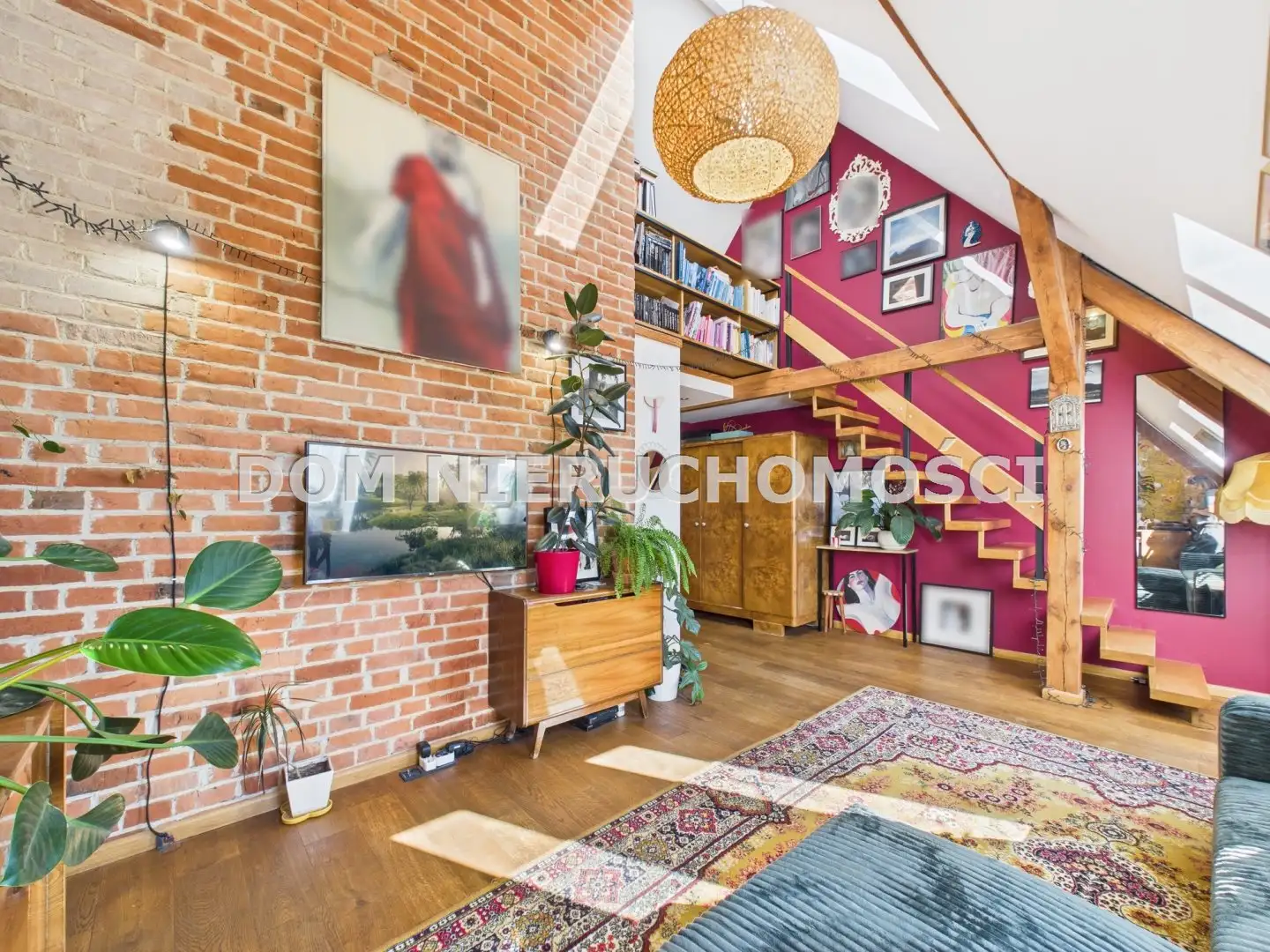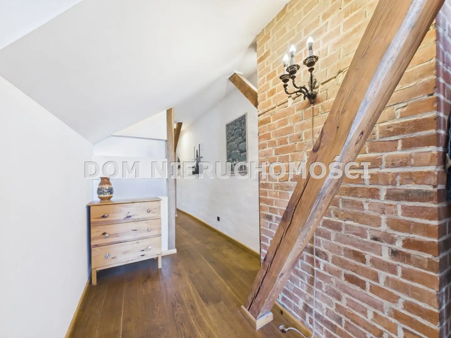 Ten unikalny apartament to przykład doskonałego połączenia współczesności z charakterem zabytkowej architektury. Położony w centrum miasta, zachwyca przemyślaną aranżacją, w której nowe materiały - stal i drewno - zostały umiejętnie zestawione z oryginalną cegłą oraz odsłoniętymi, drewnianymi belkami konstrukcyjnymi. Właściciel zadbał o spójność estetyczną i funkcjonalność - nowoczesne materiały nie dominują, lecz subtelnie współgrają z oryginalnymi elementami, tworząc harmonijną całość.