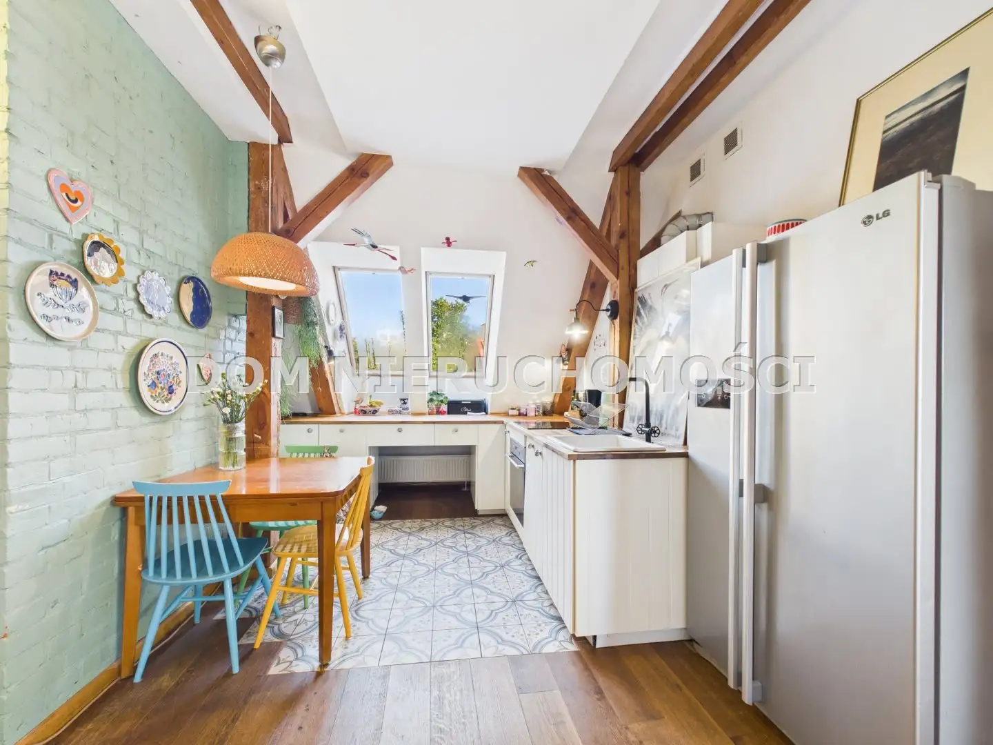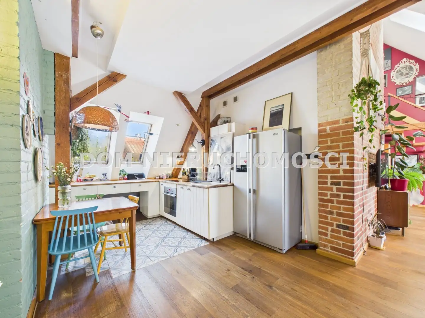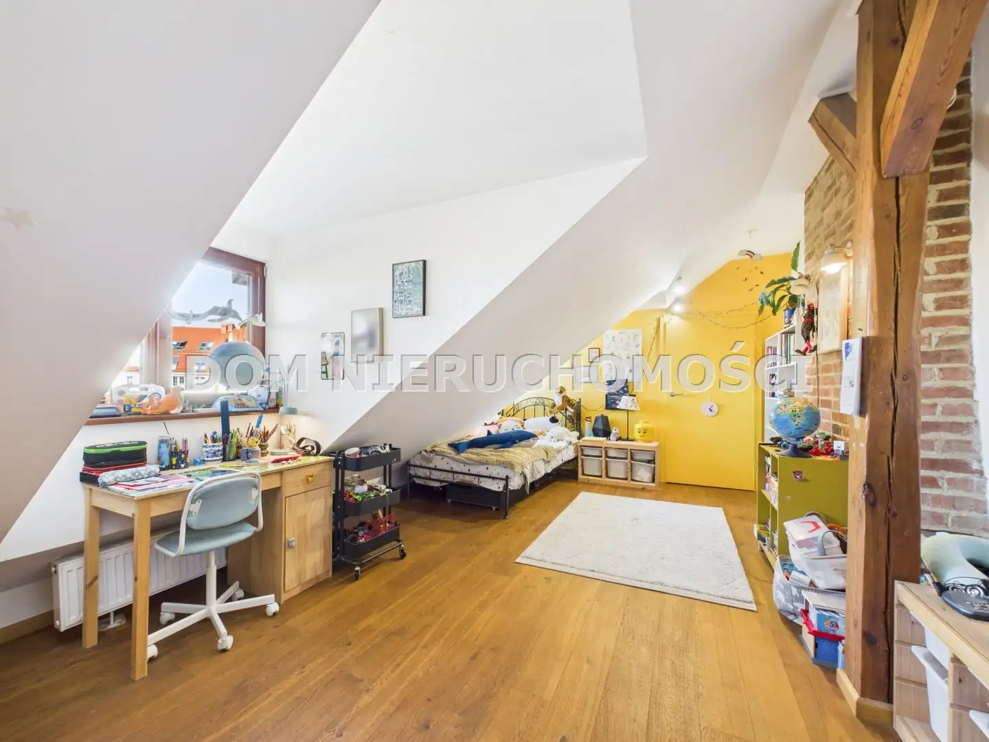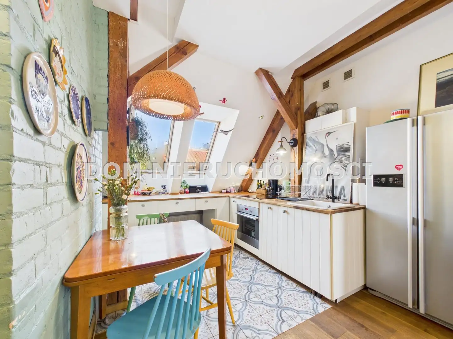 Ten unikalny apartament to przykład doskonałego połączenia współczesności z charakterem zabytkowej architektury. Położony w centrum miasta, zachwyca przemyślaną aranżacją, w której nowe materiały - stal i drewno - zostały umiejętnie zestawione z oryginalną cegłą oraz odsłoniętymi, drewnianymi belkami konstrukcyjnymi. Właściciel zadbał o spójność estetyczną i funkcjonalność - nowoczesne materiały nie dominują, lecz subtelnie współgrają z oryginalnymi elementami, tworząc harmonijną całość.
